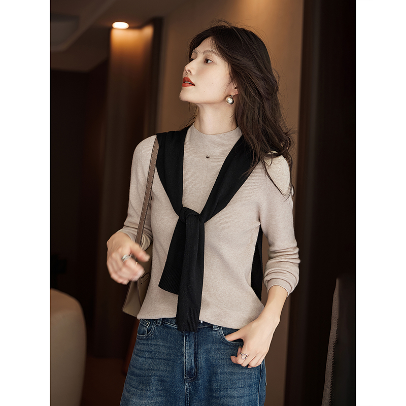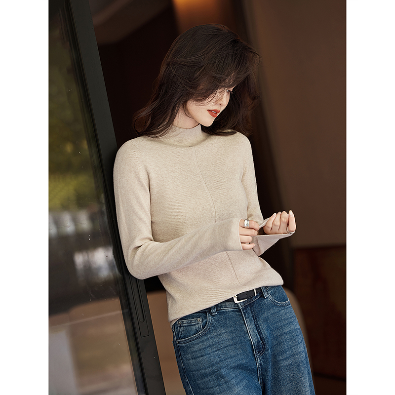 纯色半高领含绵羊毛针织套头衫 女百搭内搭修身 上衣 新款 2025年秋季