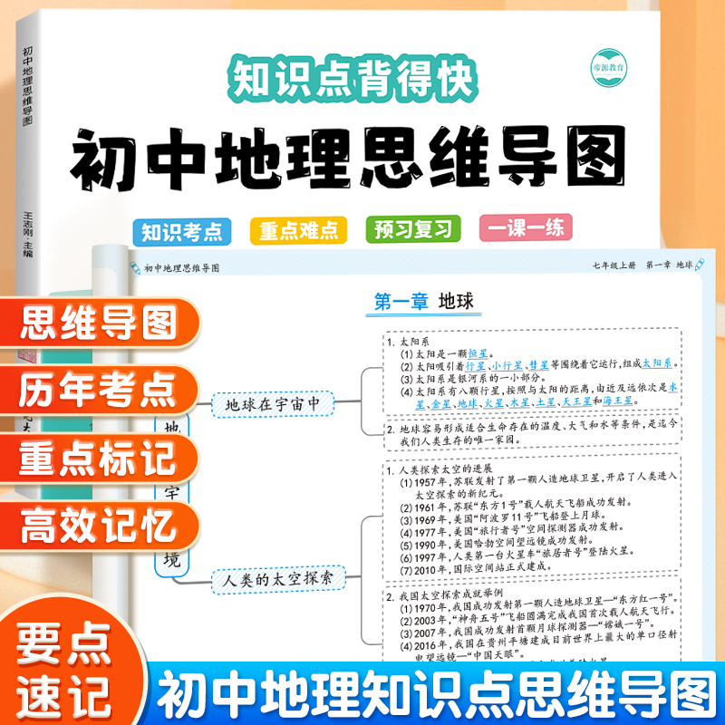 初中地理知识点大全七八年级思维导图答题模板人教版 初一二地理中考会考知识点提分笔记基础知识手册初中地理总复习手册必刷题知识