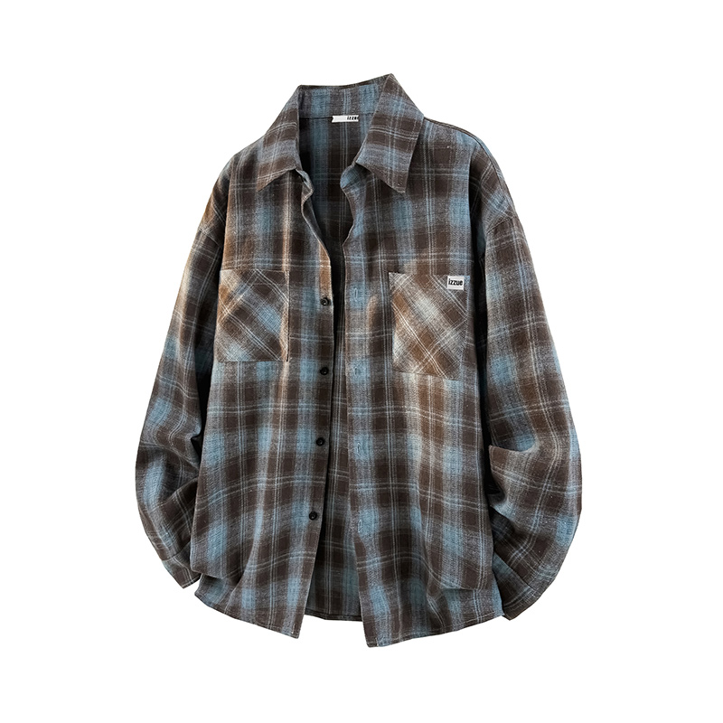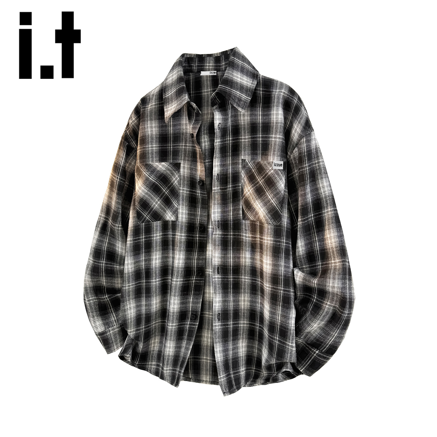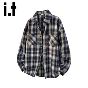 宽松百搭休闲衬衫 新款 男2025春秋季 外套Y izzue潮牌复古格衬衫