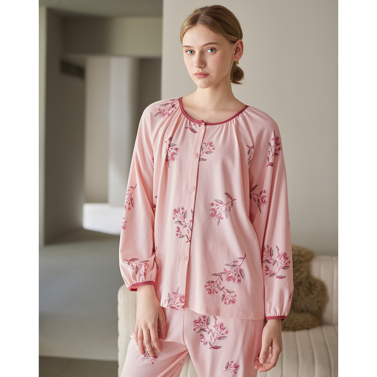 花卉休闲加大码 芬腾睡衣女春秋季 女款 套装 全棉家居服秋天 纯棉长袖
