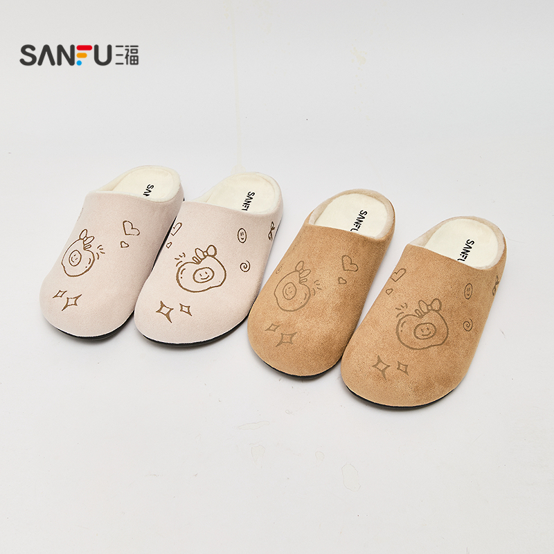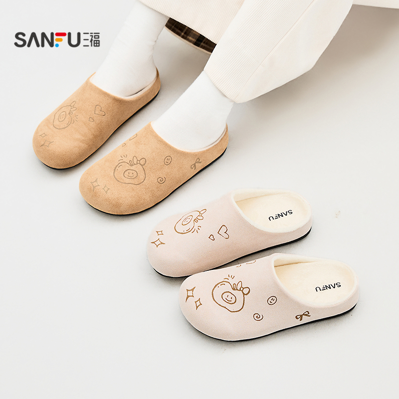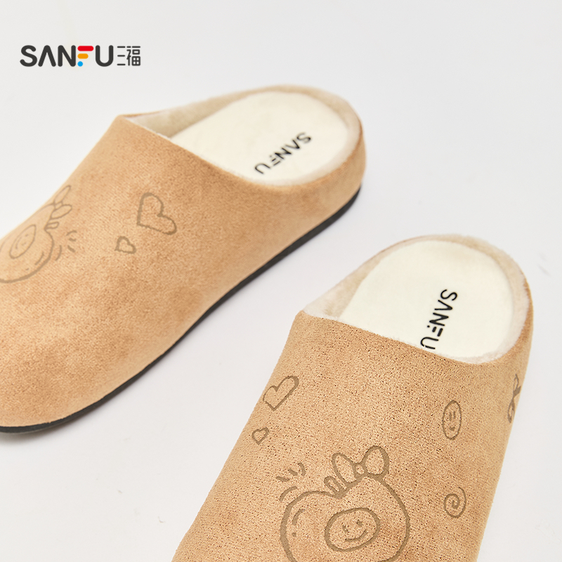 女鞋 萌趣风柔软可爱印花勃肯毛拖鞋 848284 冬季 三福女毛毛鞋