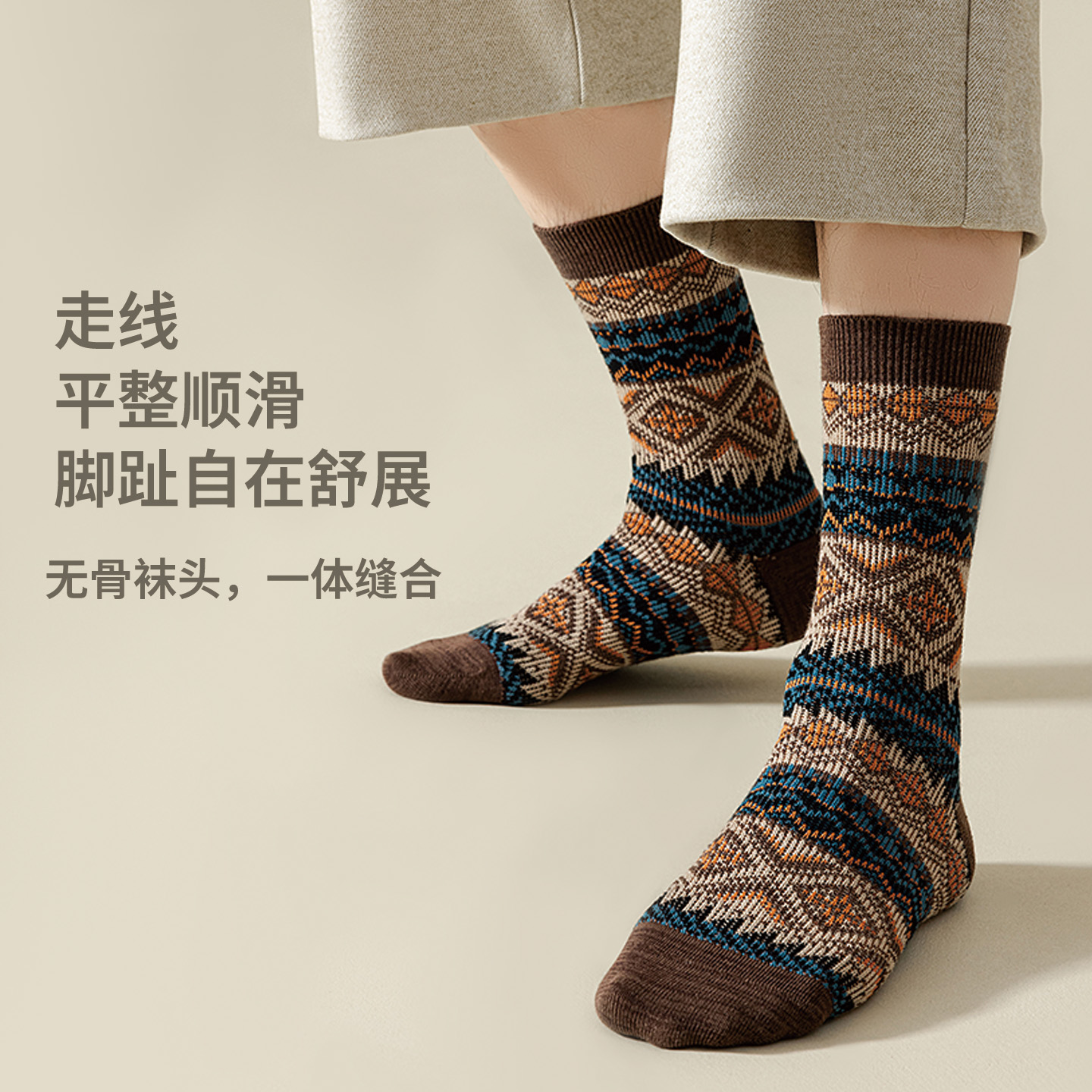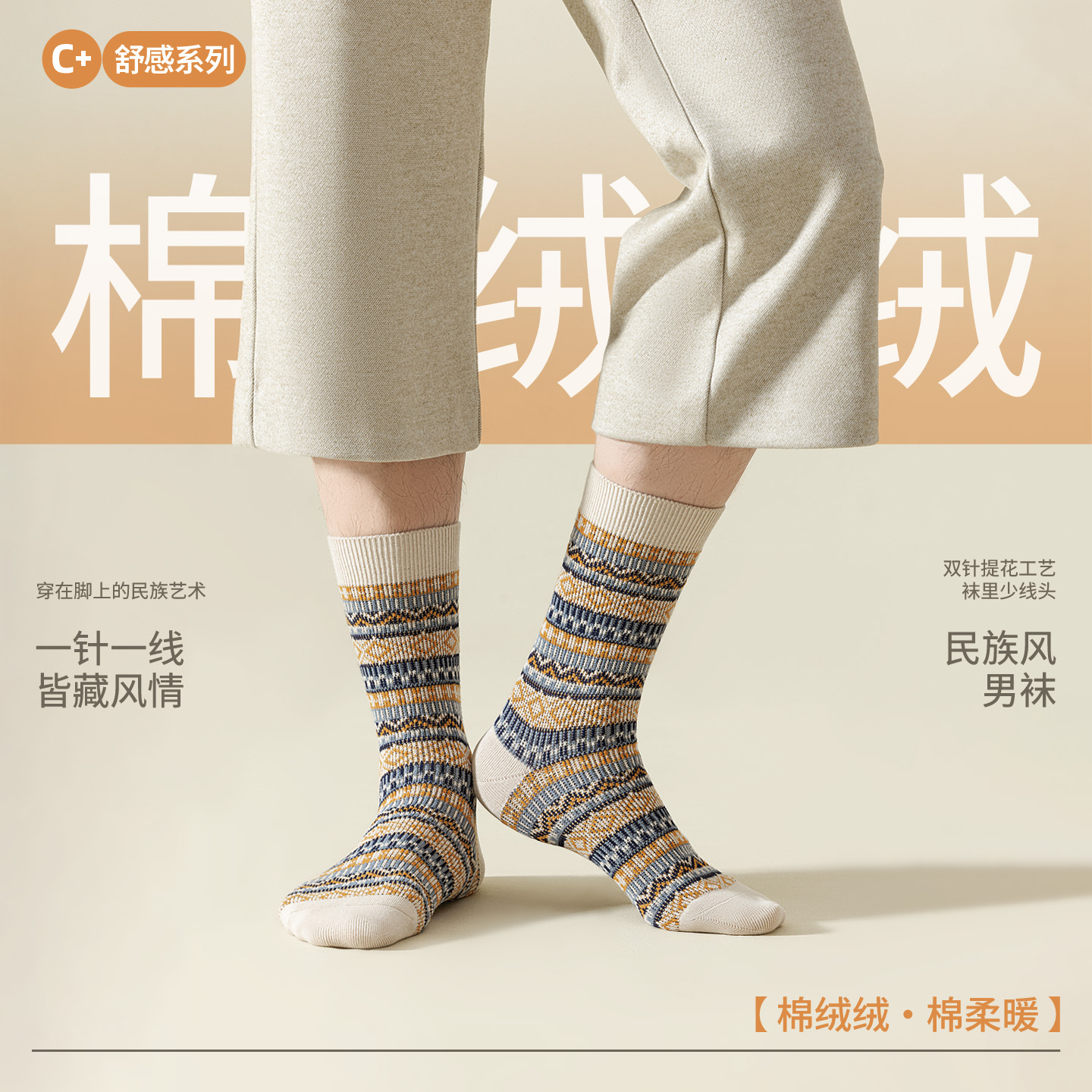 亲相见袜子男复古民族风中筒袜透气防臭吸汗棉袜秋冬季 长筒袜 男士