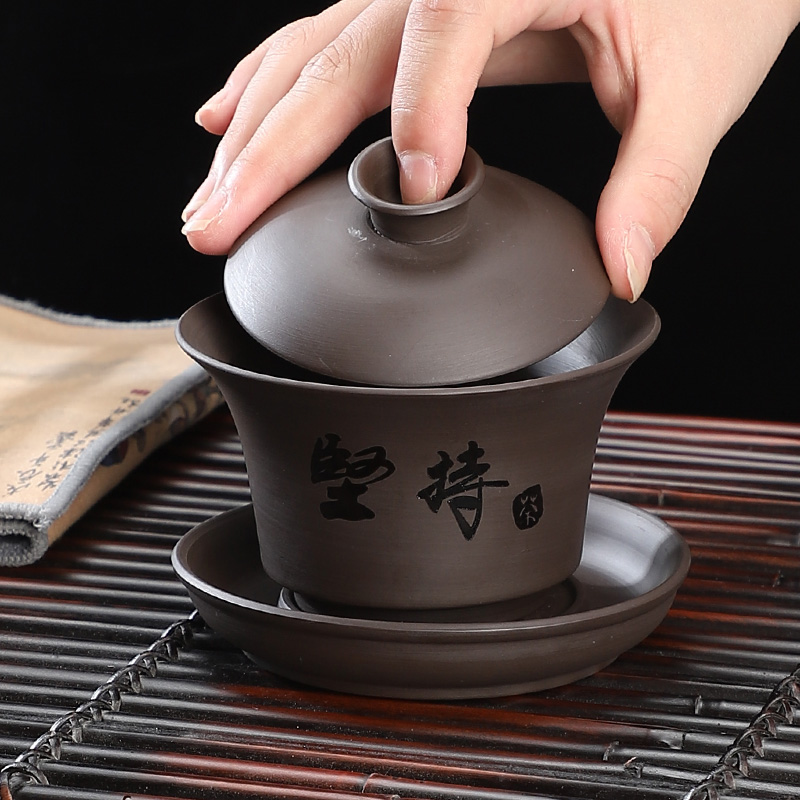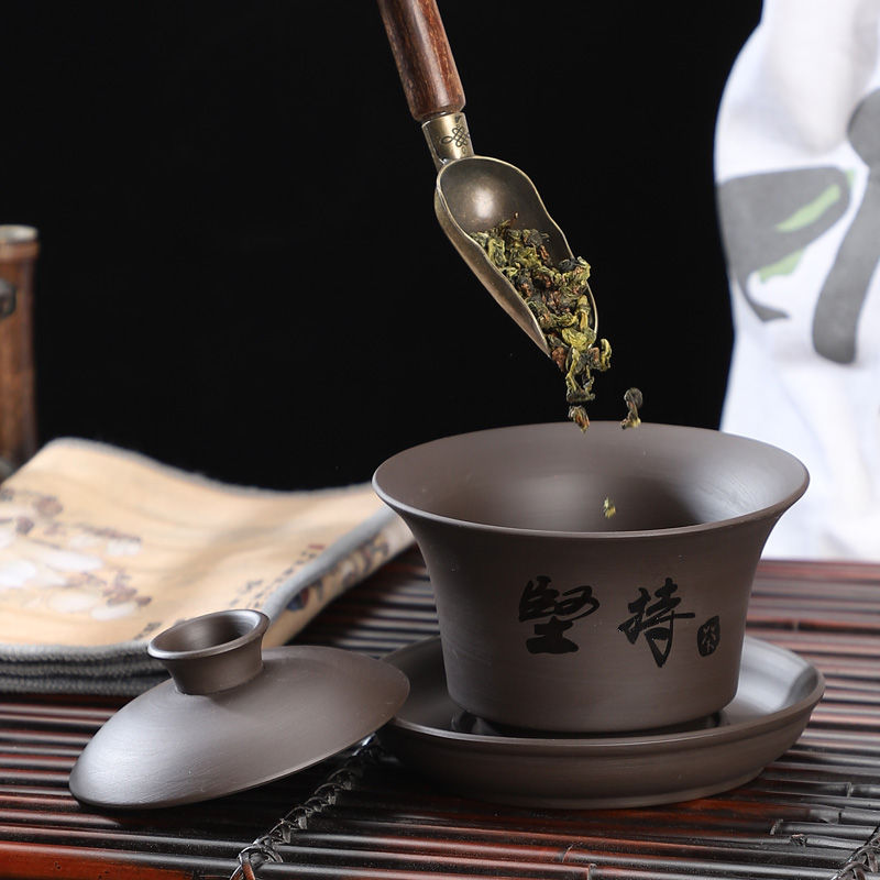 紫砂三才盖碗功夫茶具套装 带盖冲泡器 家用茶碗泡茶杯陶瓷盖碗套装
