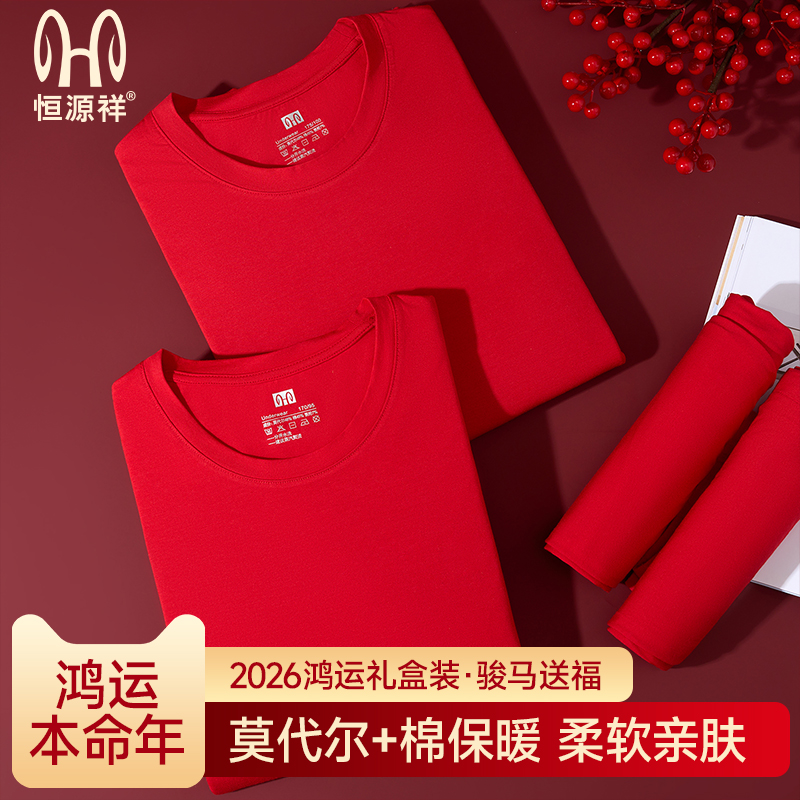 套装 打底秋衣秋裤 女2025 结婚棉毛衫 恒源祥本命年保暖内衣红色男士