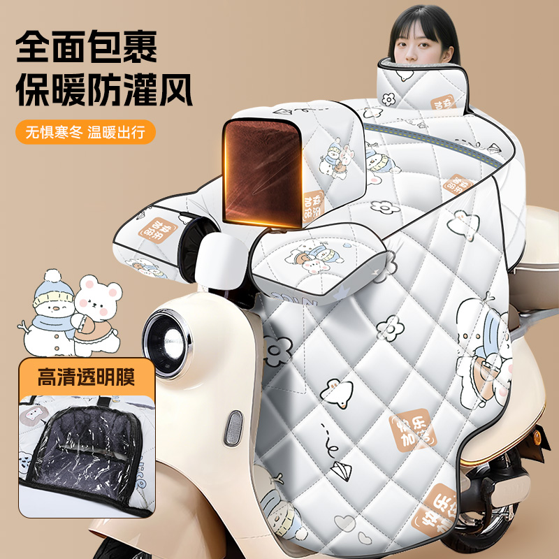 防风防水 加绒加厚冬天电瓶摩托车春秋款 电动车挡风被四季 通用冬季