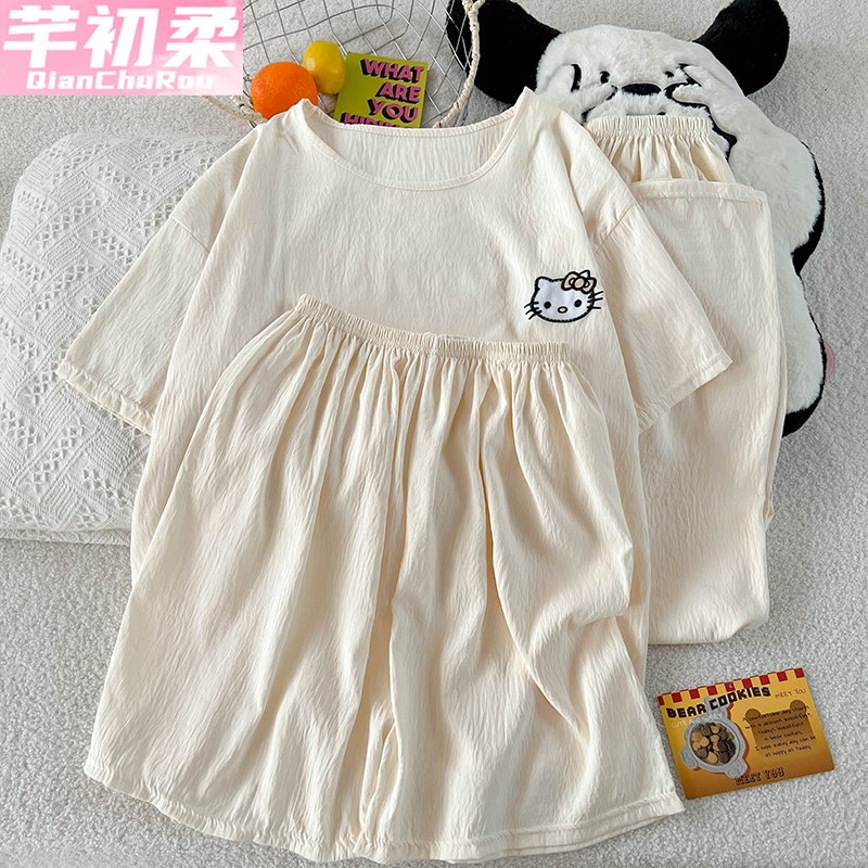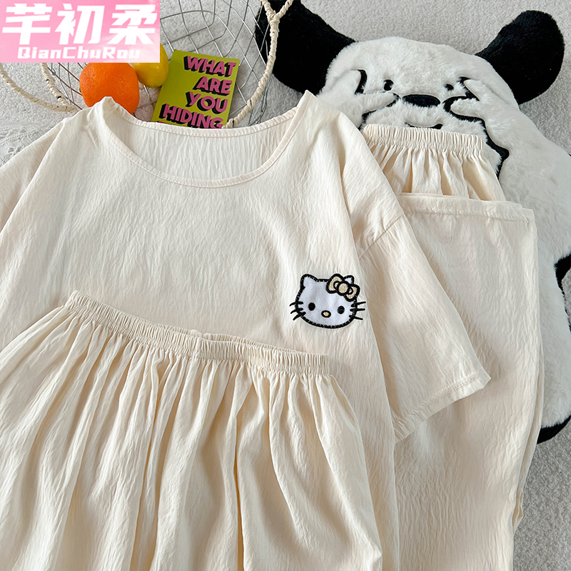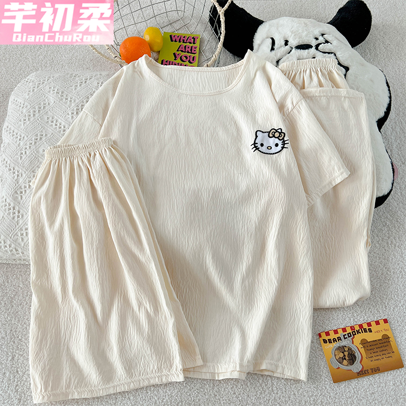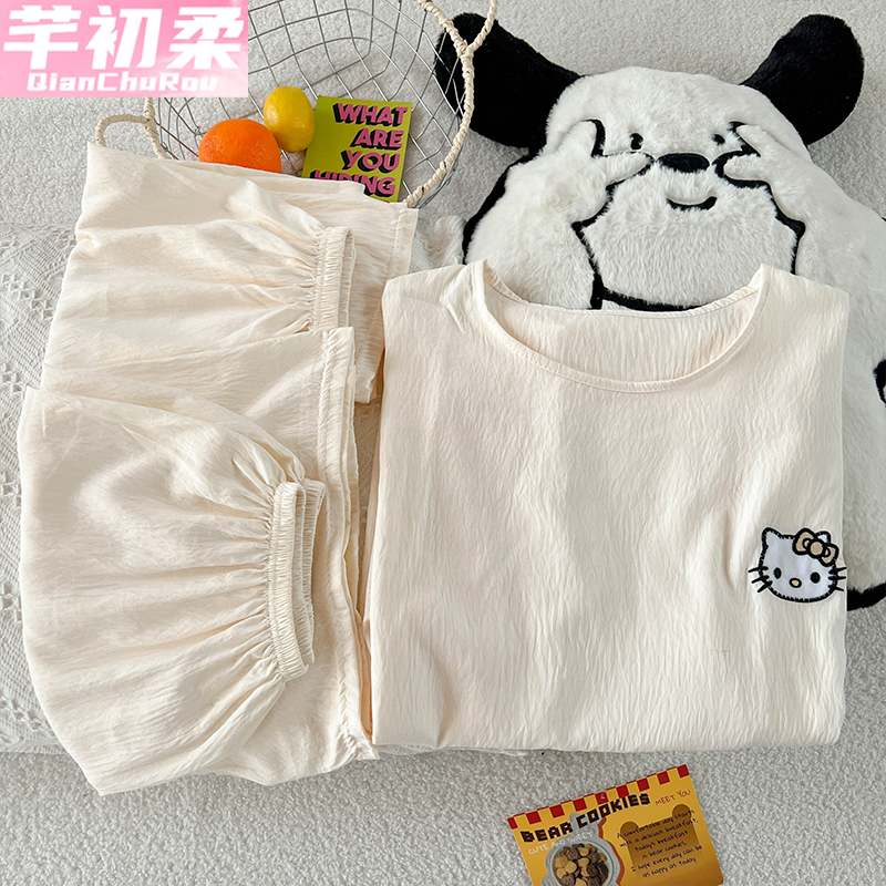 薄款 宽松加大码 2025新款 套装 可外穿家居服 短袖 猫人纯棉睡衣男夏季