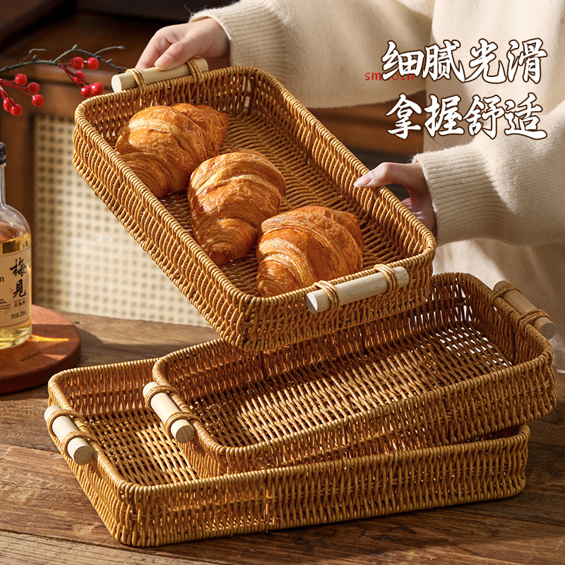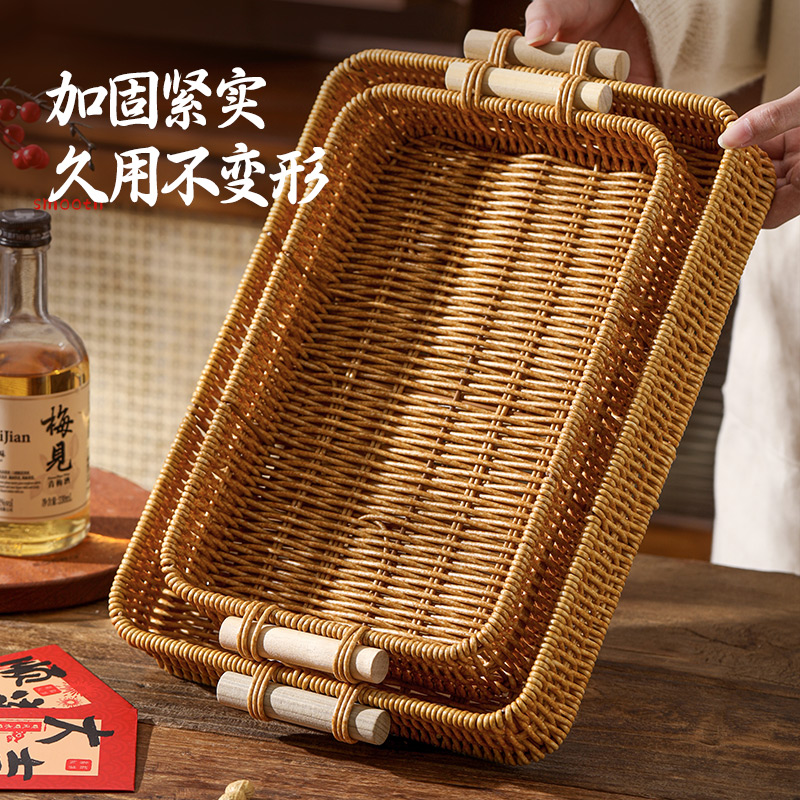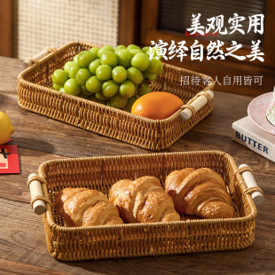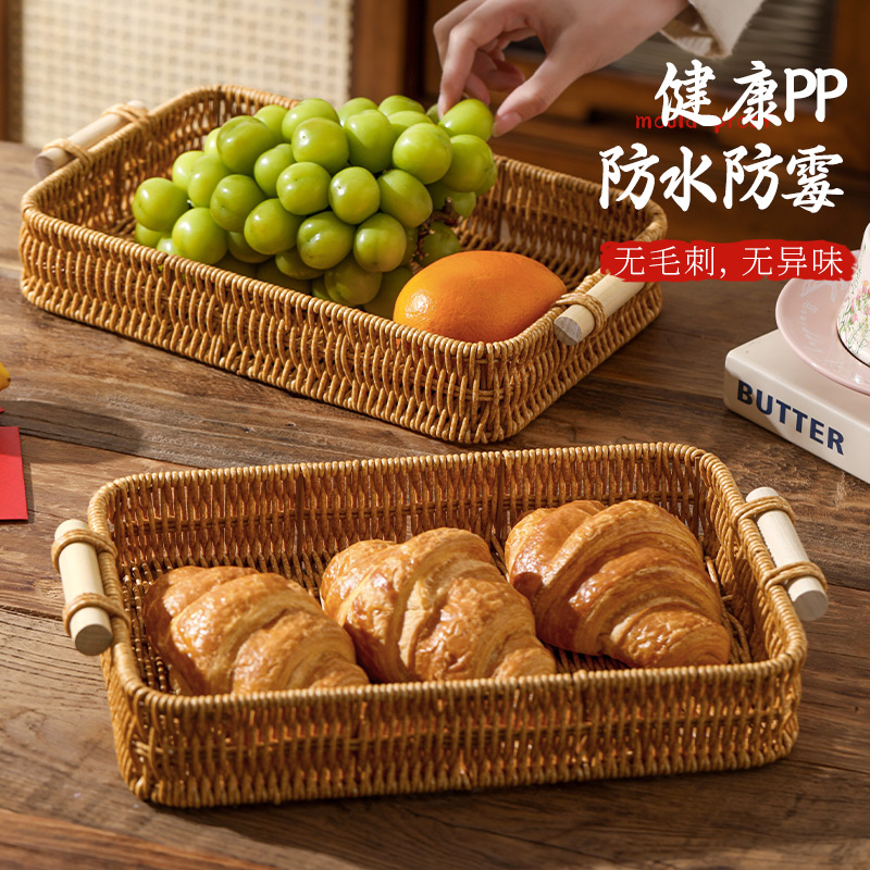 零食摆放盘茶点水果篮家用客厅茶几蛋糕面包篮子干果盘仿藤编托盘