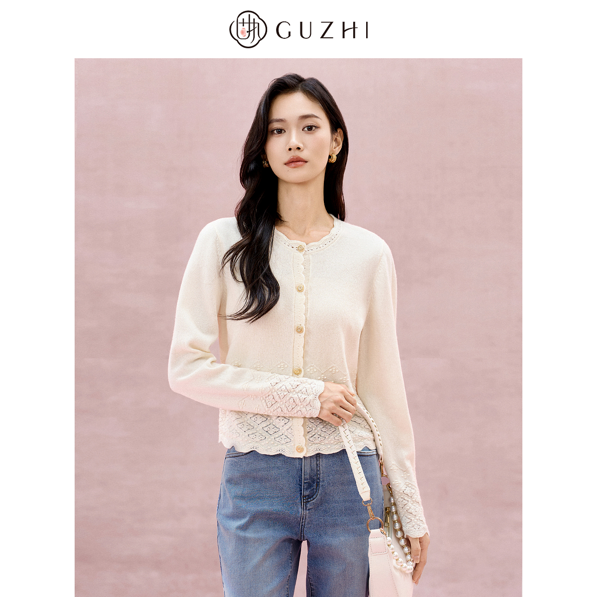 灯上华尔兹原创设计米色蕾丝针织毛衣女25秋新品 XIAOLI筱李