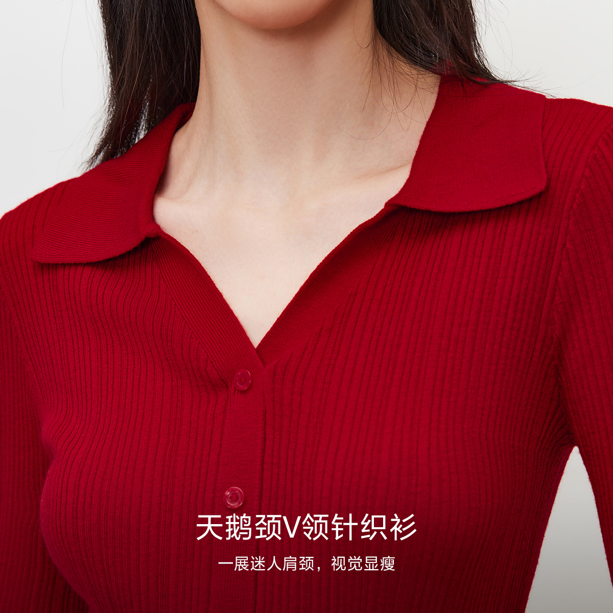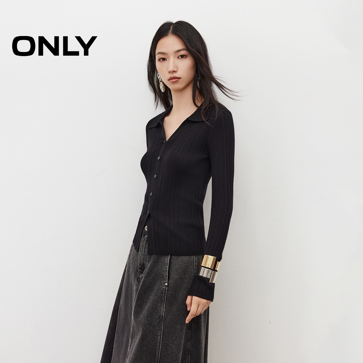 新款 针织衫 竖排装 纯色长袖 女 饰纽扣正肩舒适V领修身 ONLY2025秋季