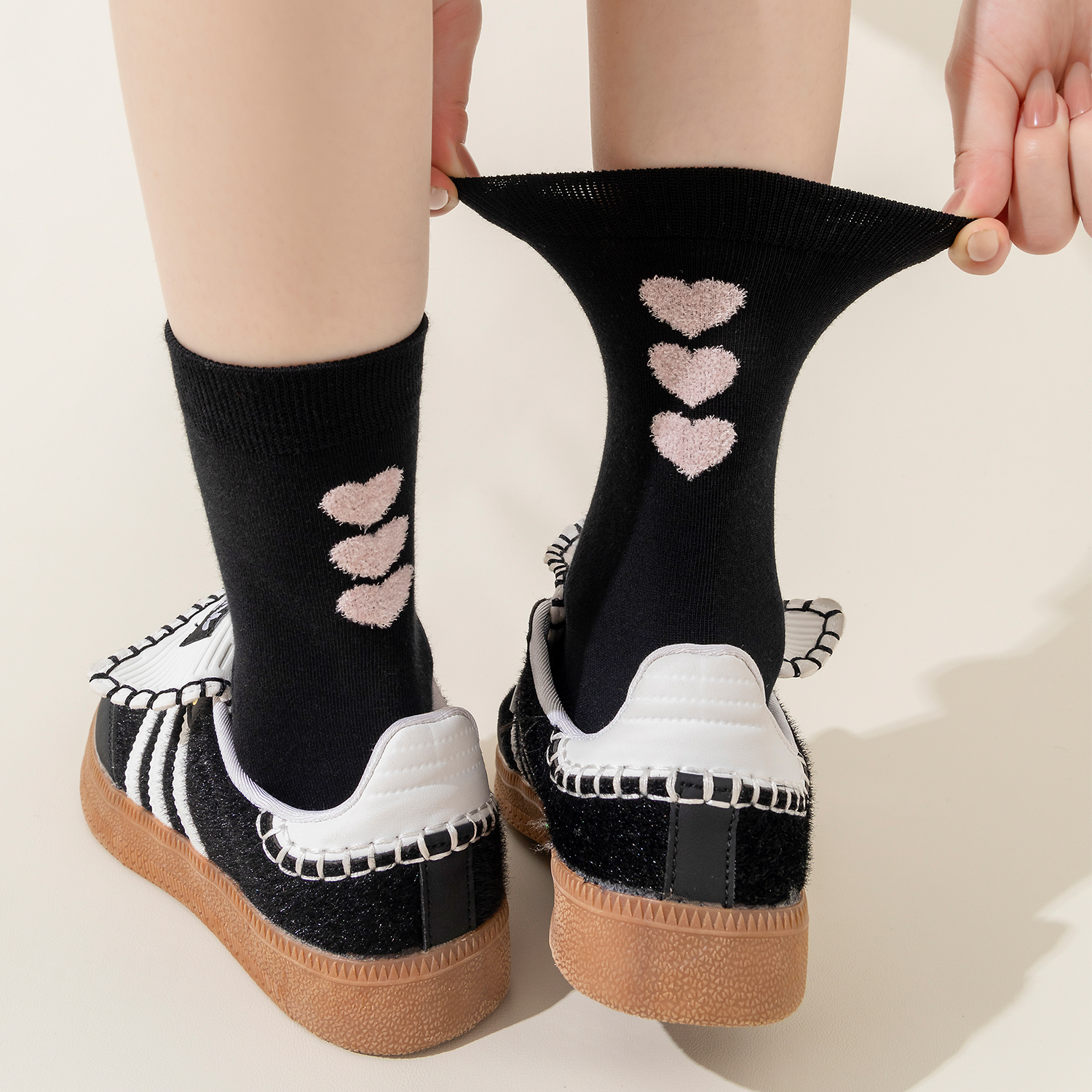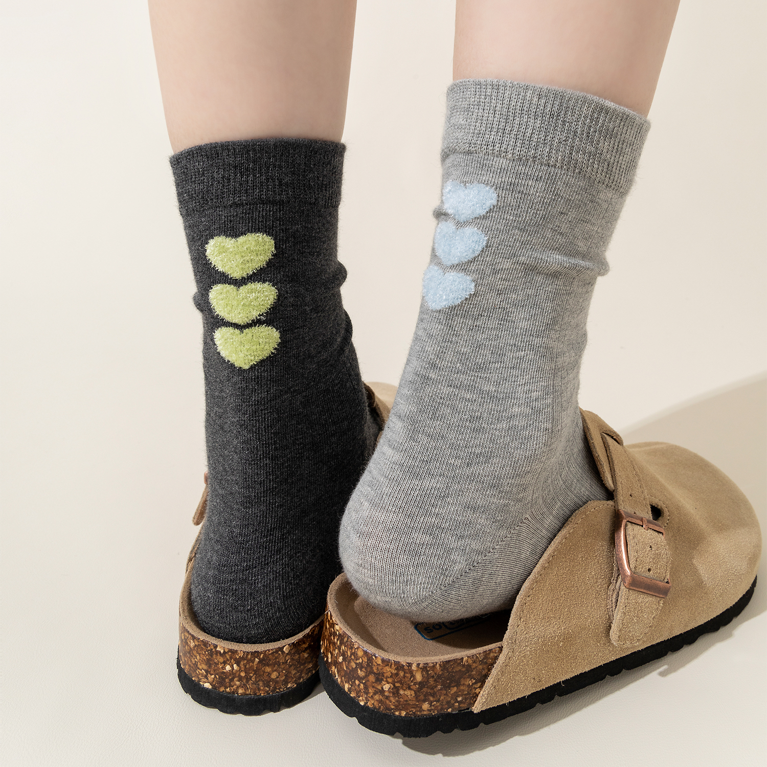 白色袜子女春秋款 中筒袜 长袜纯棉爱心后跟可爱日系堆堆袜搭勃肯鞋