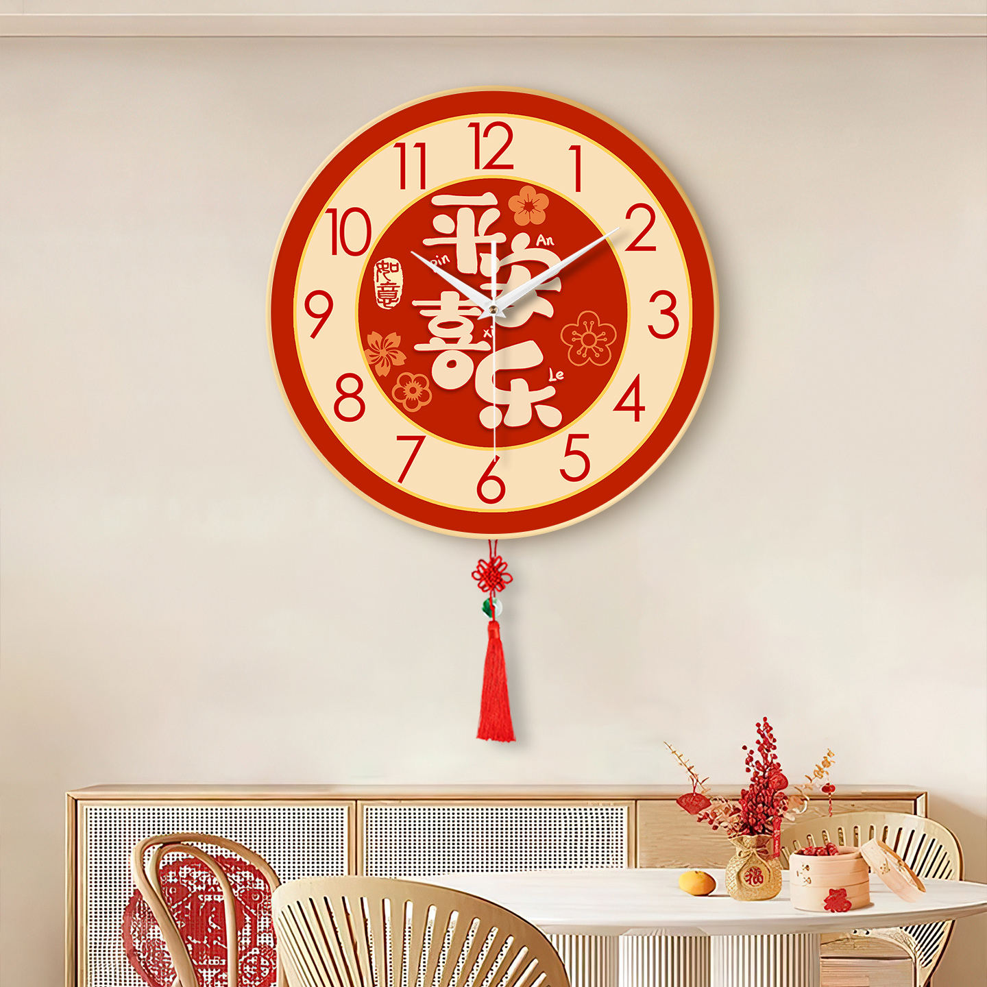 福字挂钟客厅家用静音时钟钟表挂墙装 饰画简约大气福气平安喜乐