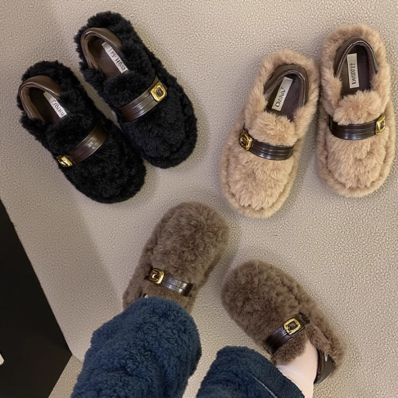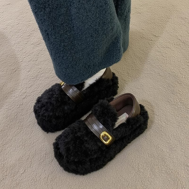 厚底增高皮带扣加绒保暖一脚蹬棉鞋 冬季 女2025年新款 两穿毛毛鞋