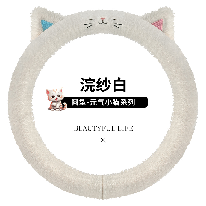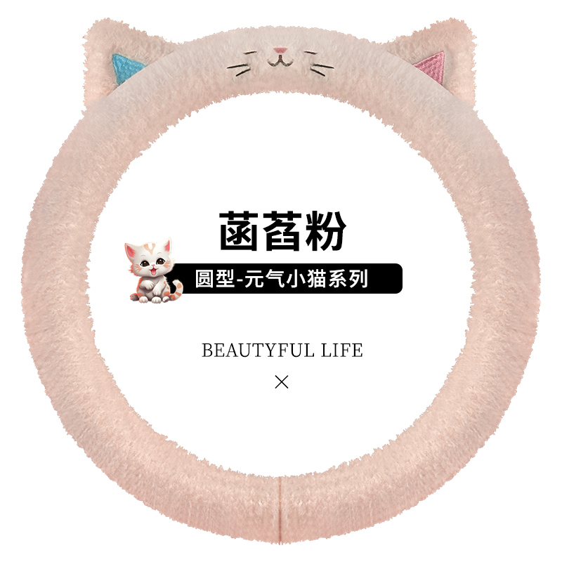 冬季 卡通猫高级感可爱毛绒汽车方向盘套吸汗亲肤防滑耐脏内饰把套