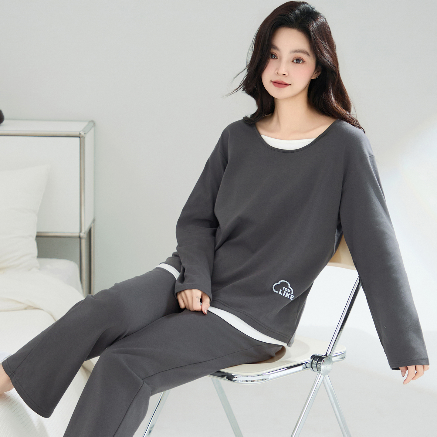 假两件长裤 纯棉薄长袖 简约休闲可外穿家居服 春秋季 卡之恋睡衣女款