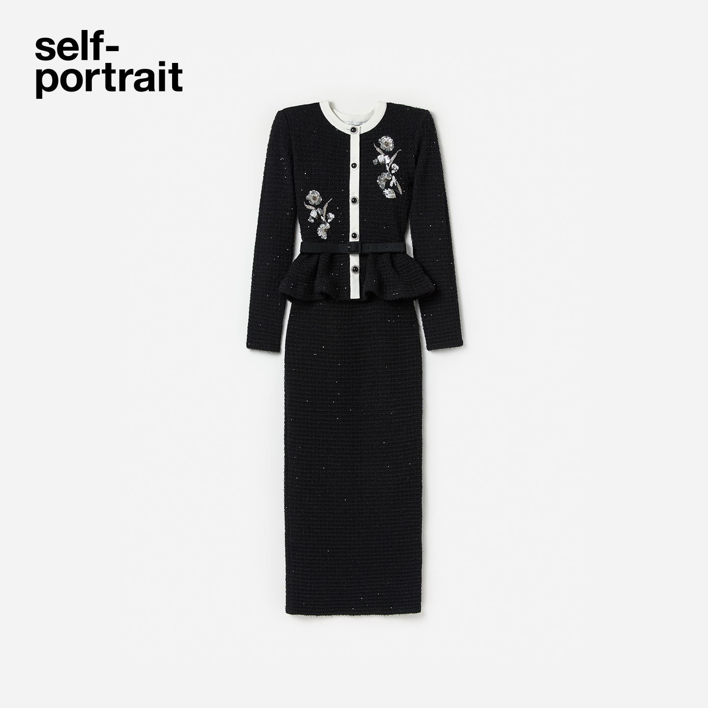 收腰长裙礼服裙 拼接连衣裙女重工时尚 2025秋季 气质名媛风v领长袖