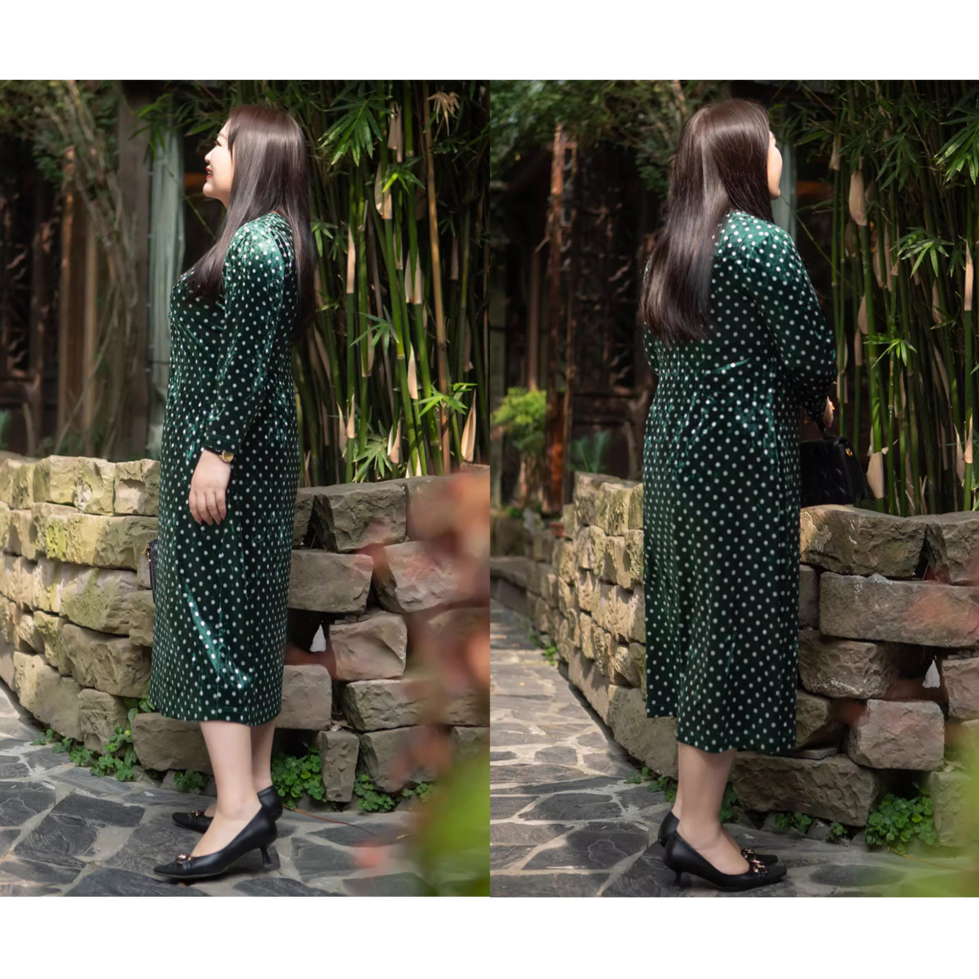 女装 大码 胖mm裙子 墨绿色V领连衣裙通勤修身 美丽客栈2025早秋新款