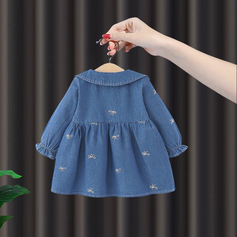 罗衣高级肌理感黑色收腰连衣裙女秋冬系带大摆圆领内搭裙子12807