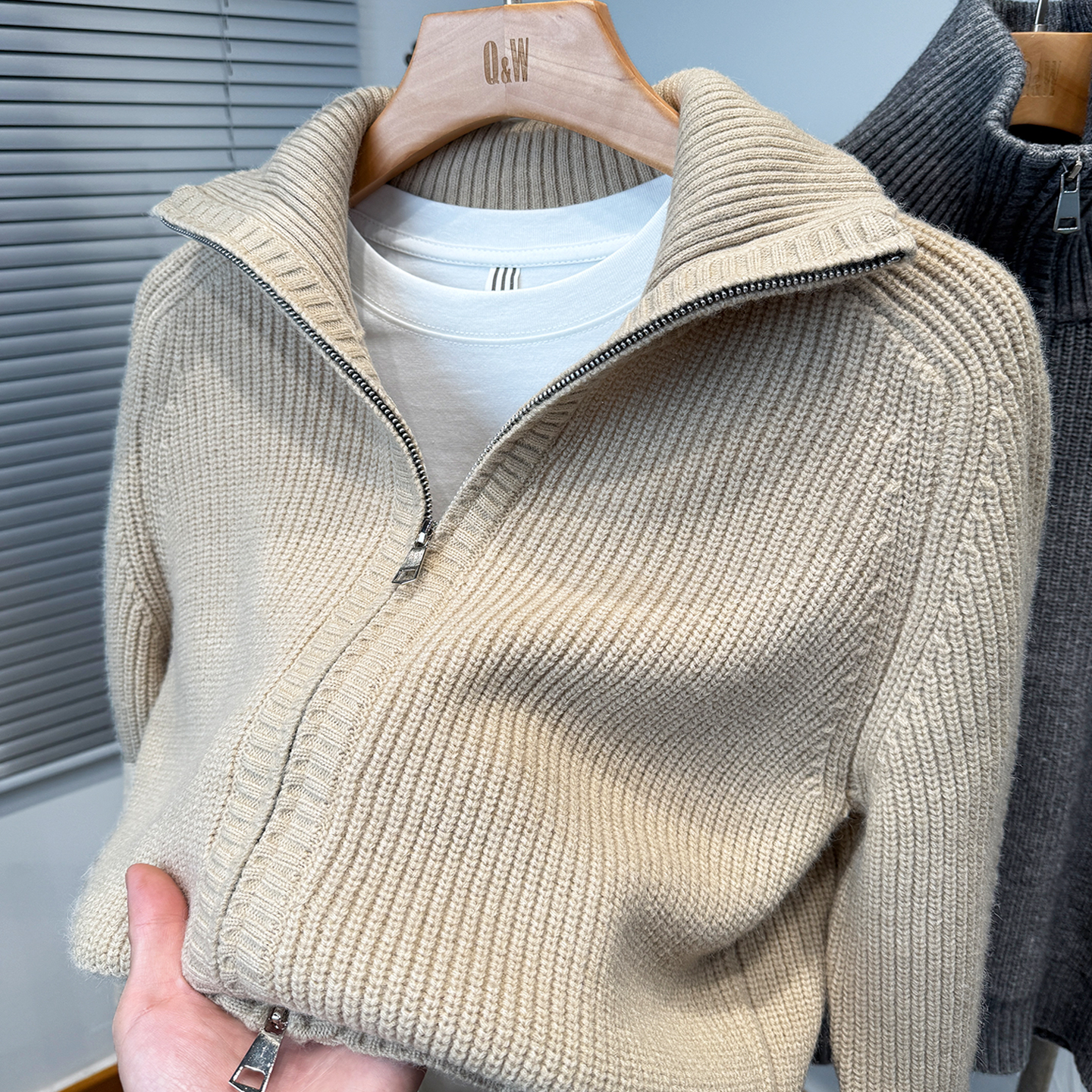 休闲外搭潮 青年针织毛衣外套男装 双拉链可翻高领开衫 男加厚秋冬季