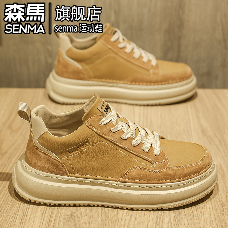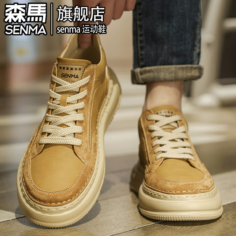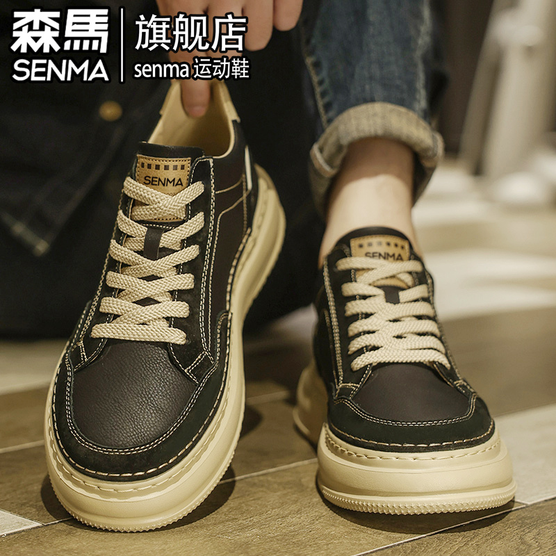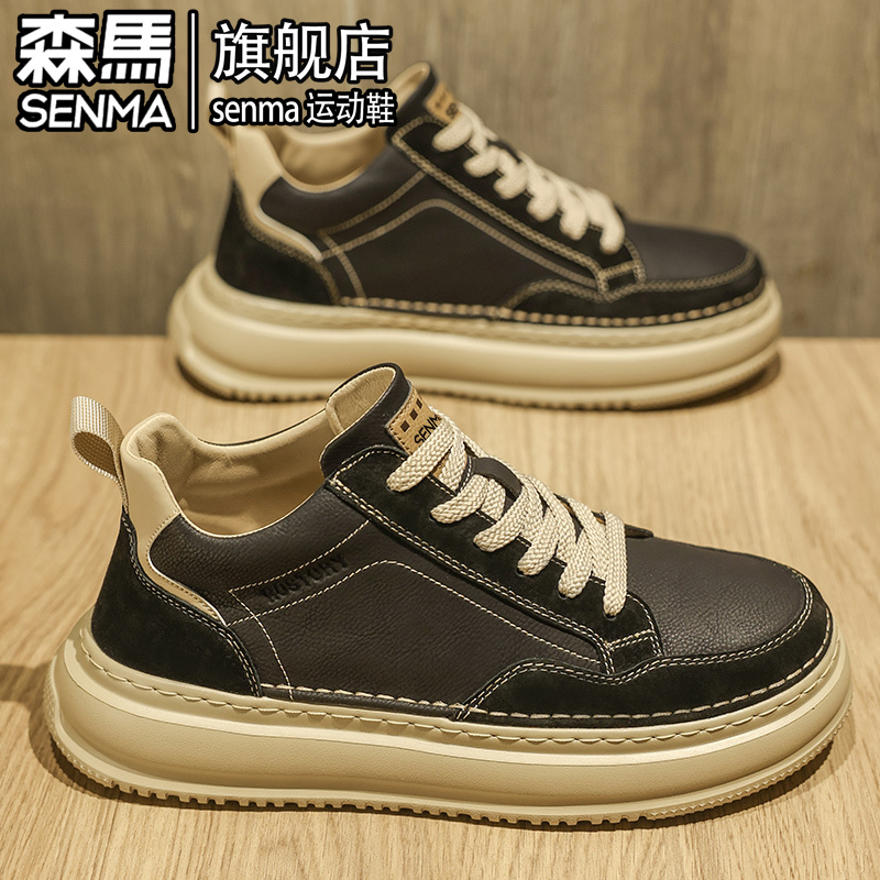 运动休闲黑色中帮板鞋 森马高帮男鞋 男士 防水防滑上班工作皮鞋 秋季