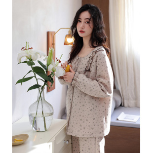 秋季 休闲空调服套装 纯棉长袖 薄款 家居服夏季 家乐芬睡衣女士春秋款