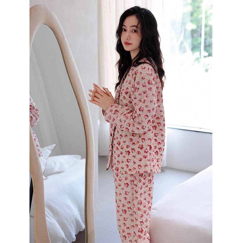 防湿水2025新 长裤 内茵睡衣女春秋带胸垫家居服套装 可外穿情侣长袖