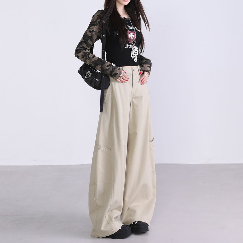 高街休闲直筒弯刀裤 白色阔腿工装 高腰直筒老钱风时尚 女春秋新款 裤