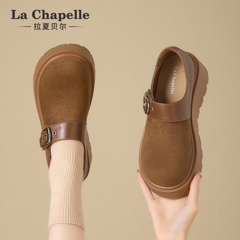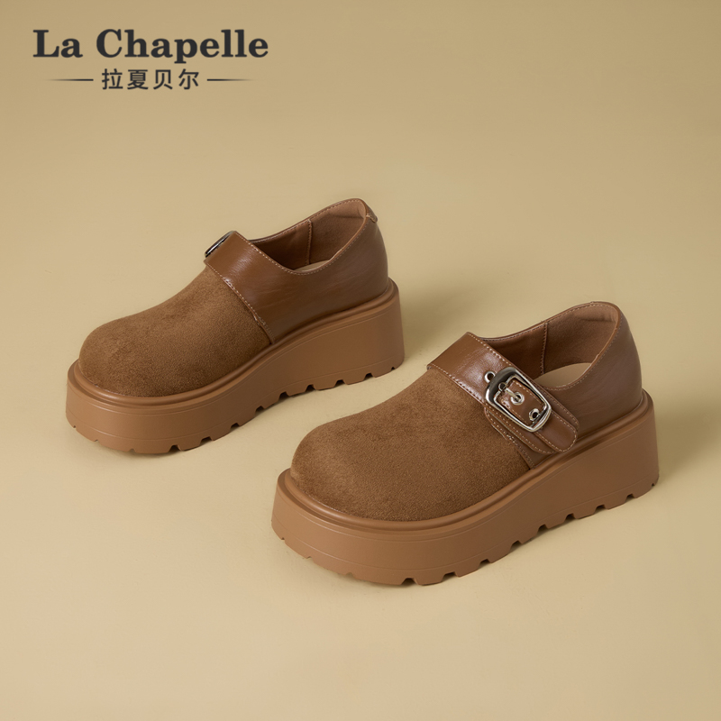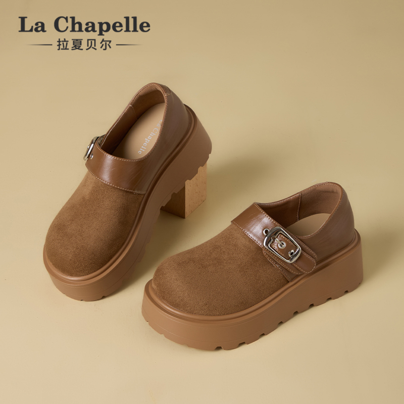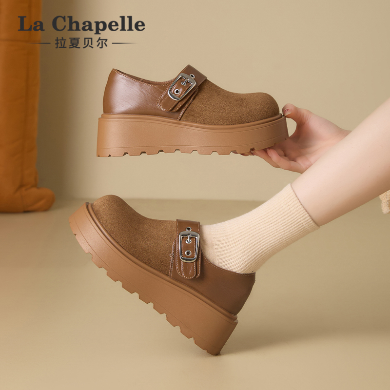 女2025秋季 小皮鞋 新款 全包单鞋 复古休闲乐福鞋 拉夏贝尔厚底勃肯鞋