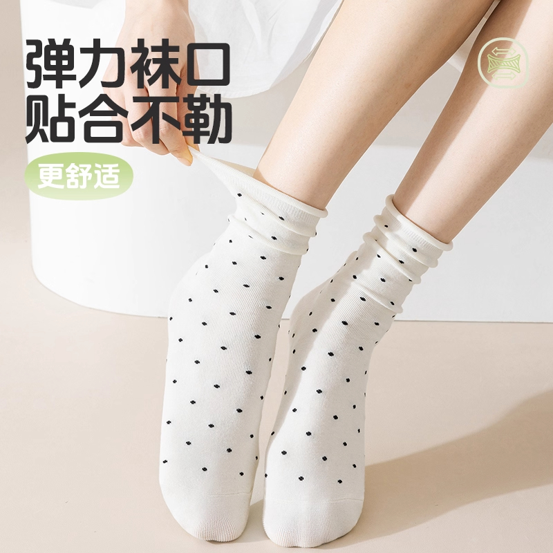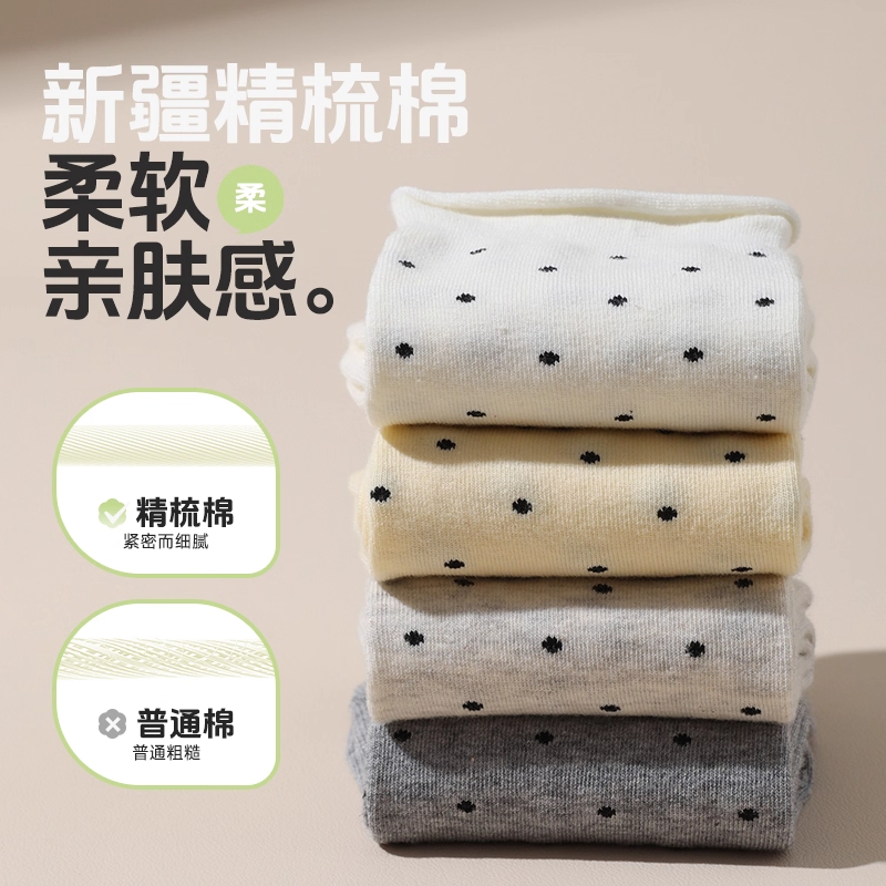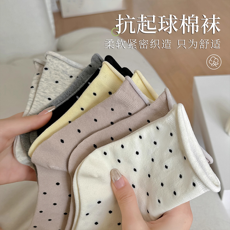 起多规格 4双装 春秋款 袜子女卷边波点女士中筒袜