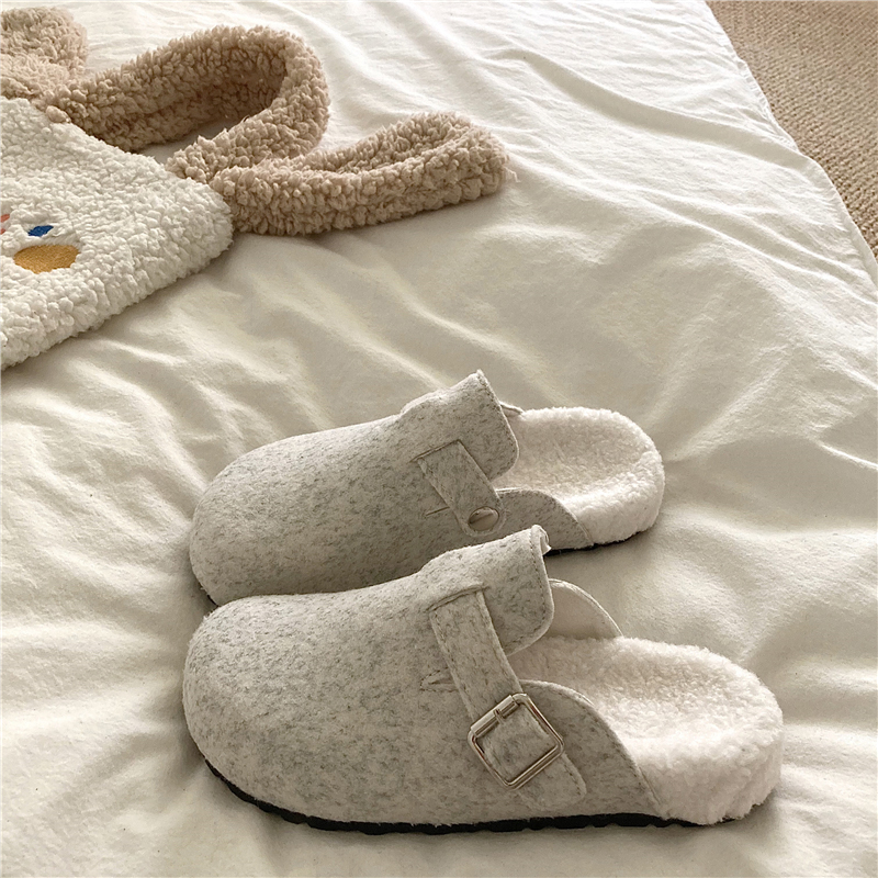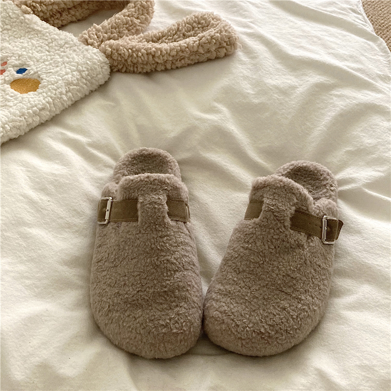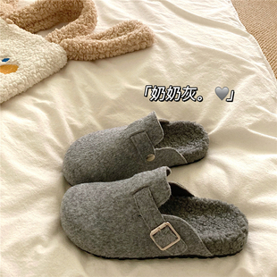 一脚蹬加绒棉拖鞋 厚底勃肯鞋 秋冬爆款 女外穿2025新款 包头毛毛拖鞋