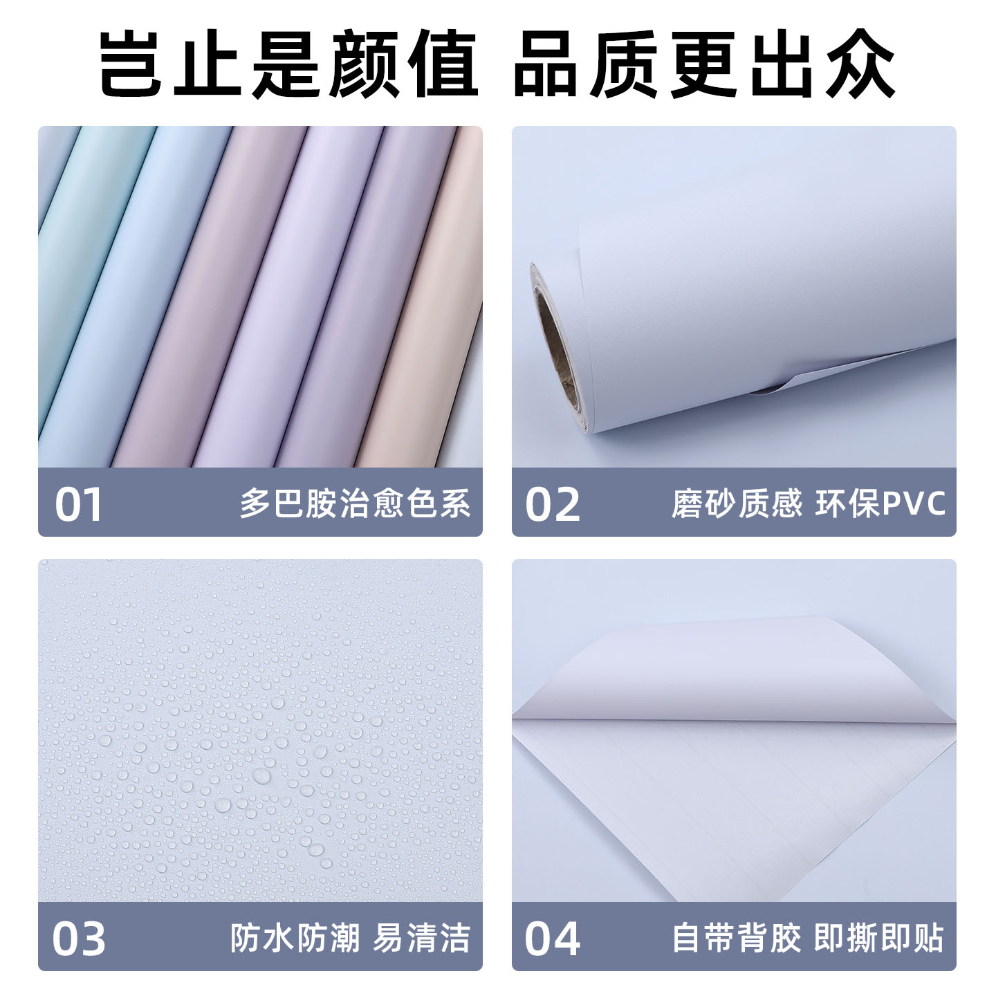 莫兰迪纯色墙纸自粘加厚墙面装 饰高级感墙贴遮丑防水防潮墙壁贴纸