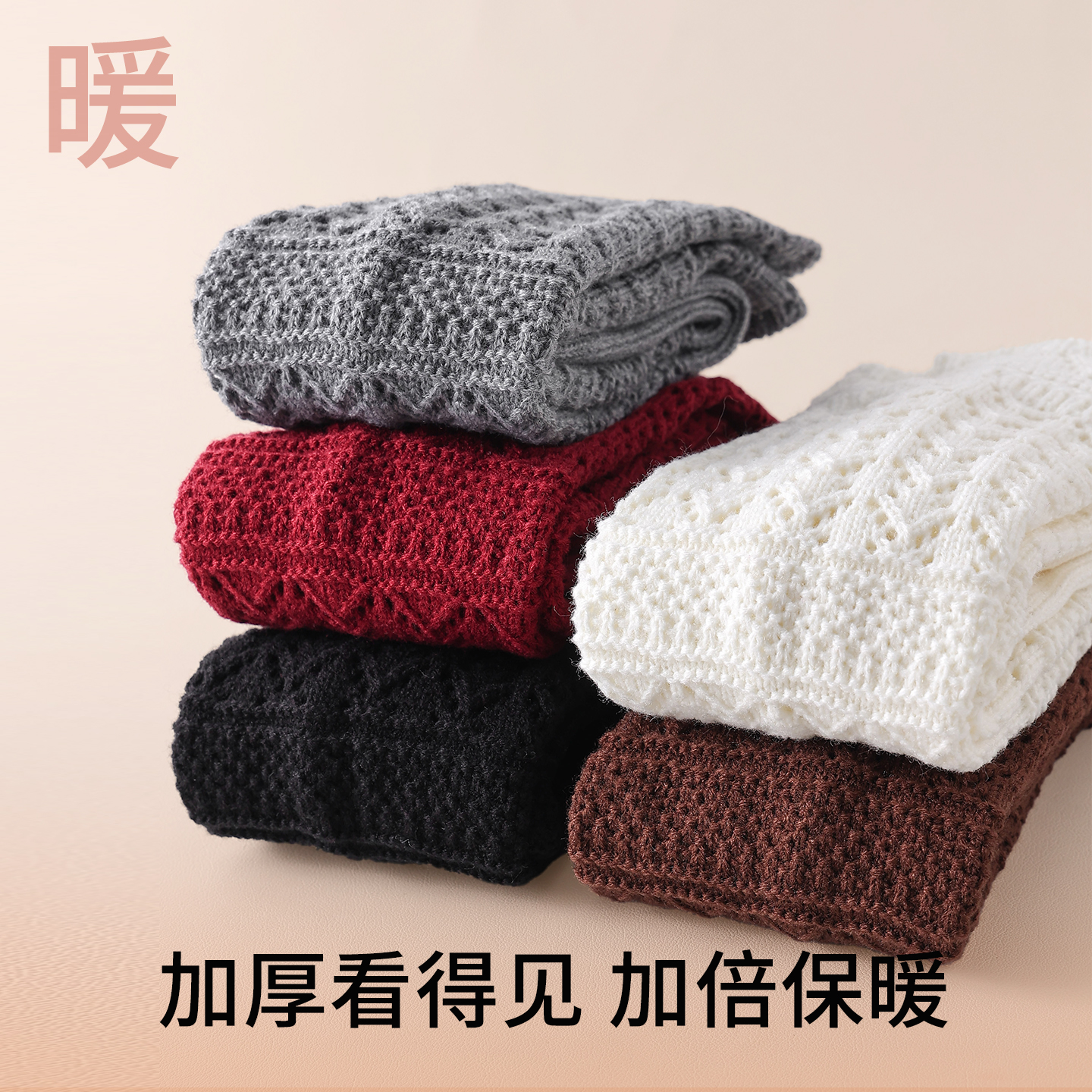 白色镂空小腿袜子女秋冬季 羊毛针织长筒堆堆袜ins潮芭蕾风配靴子