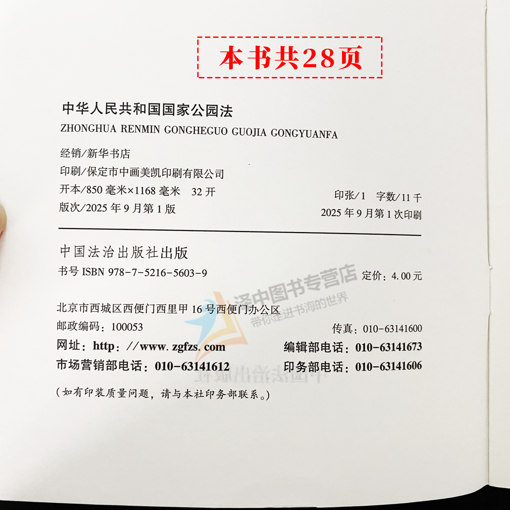 2025新书 中国法治出版 中华人民共和国国家公园法 32开 社9787521656039 含草案说明 正版