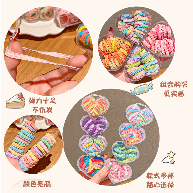 儿童皮筋不伤发彩色盒装 花边橡皮筋女童高弹力扎头发发圈宝宝头绳