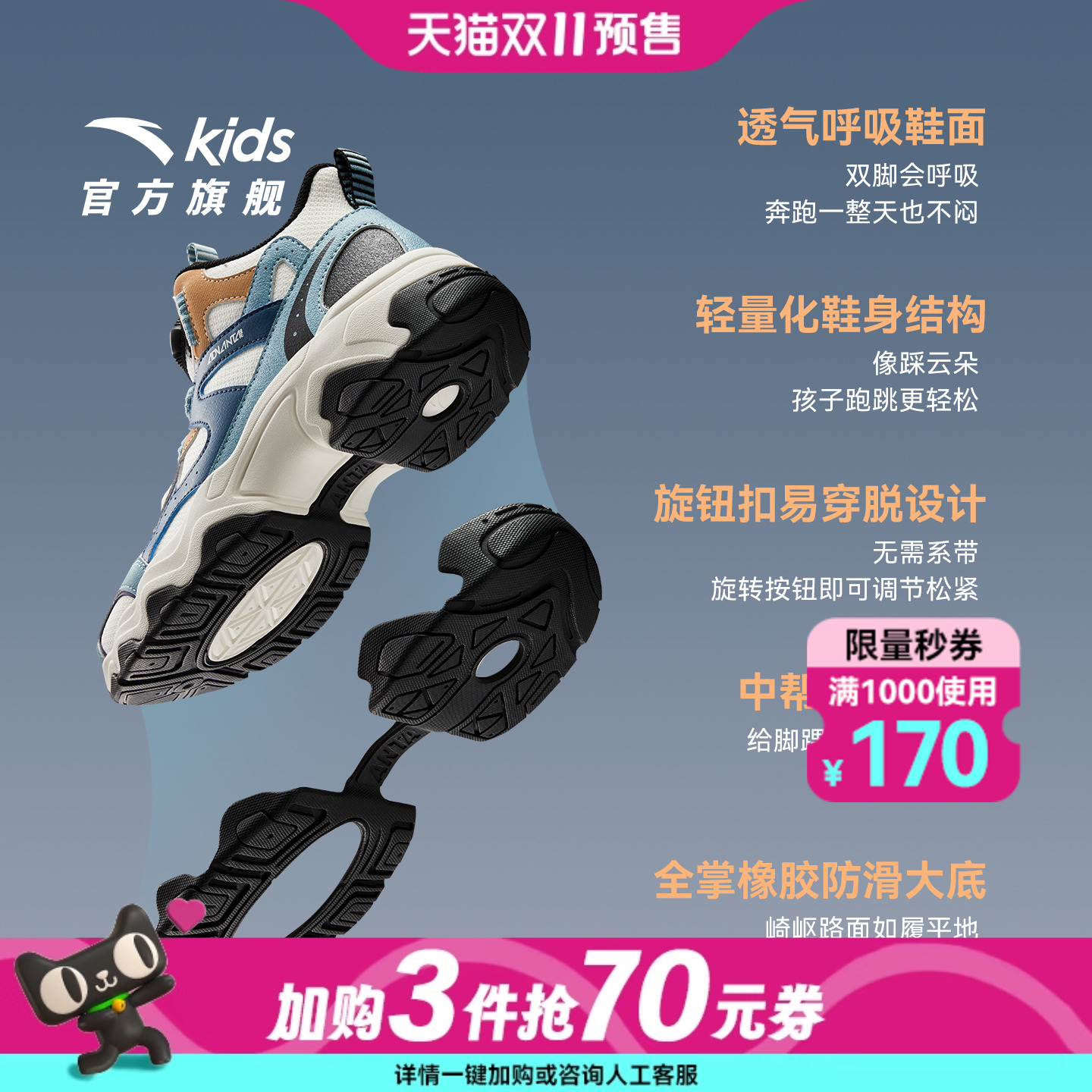 增高厚底不累脚休闲鞋 潮流运动鞋 女鞋 复古小白鞋 秋季 安踏小千禧