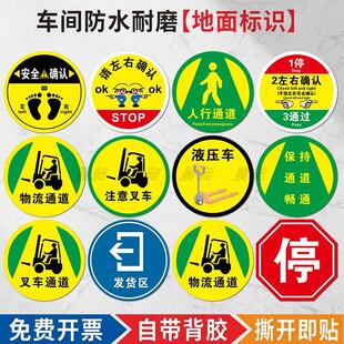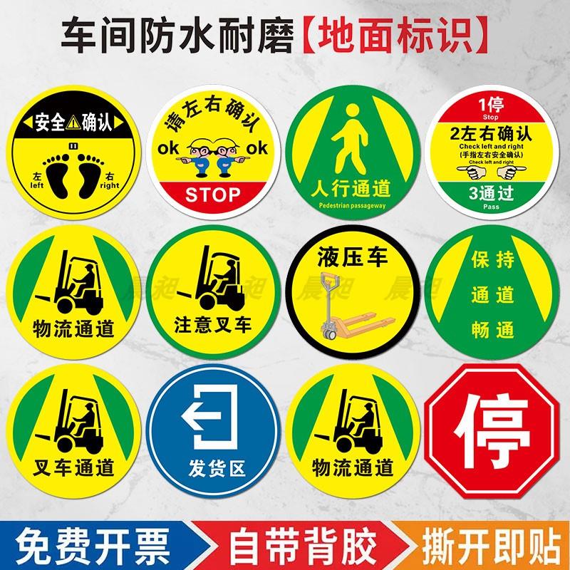 请左右确认标识贴一停二看确认通过提示贴驻足点地贴安全确认左边右边注意行人叉车物流通道车间标示贴定制做