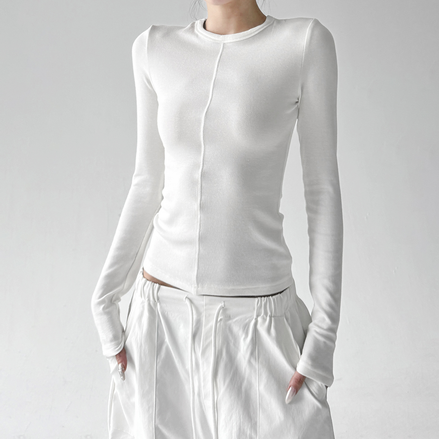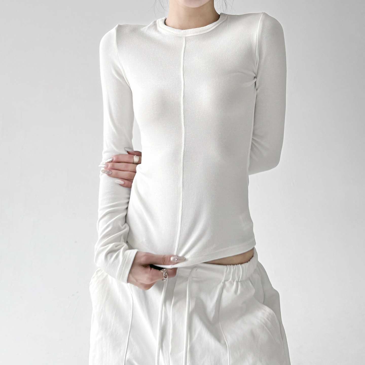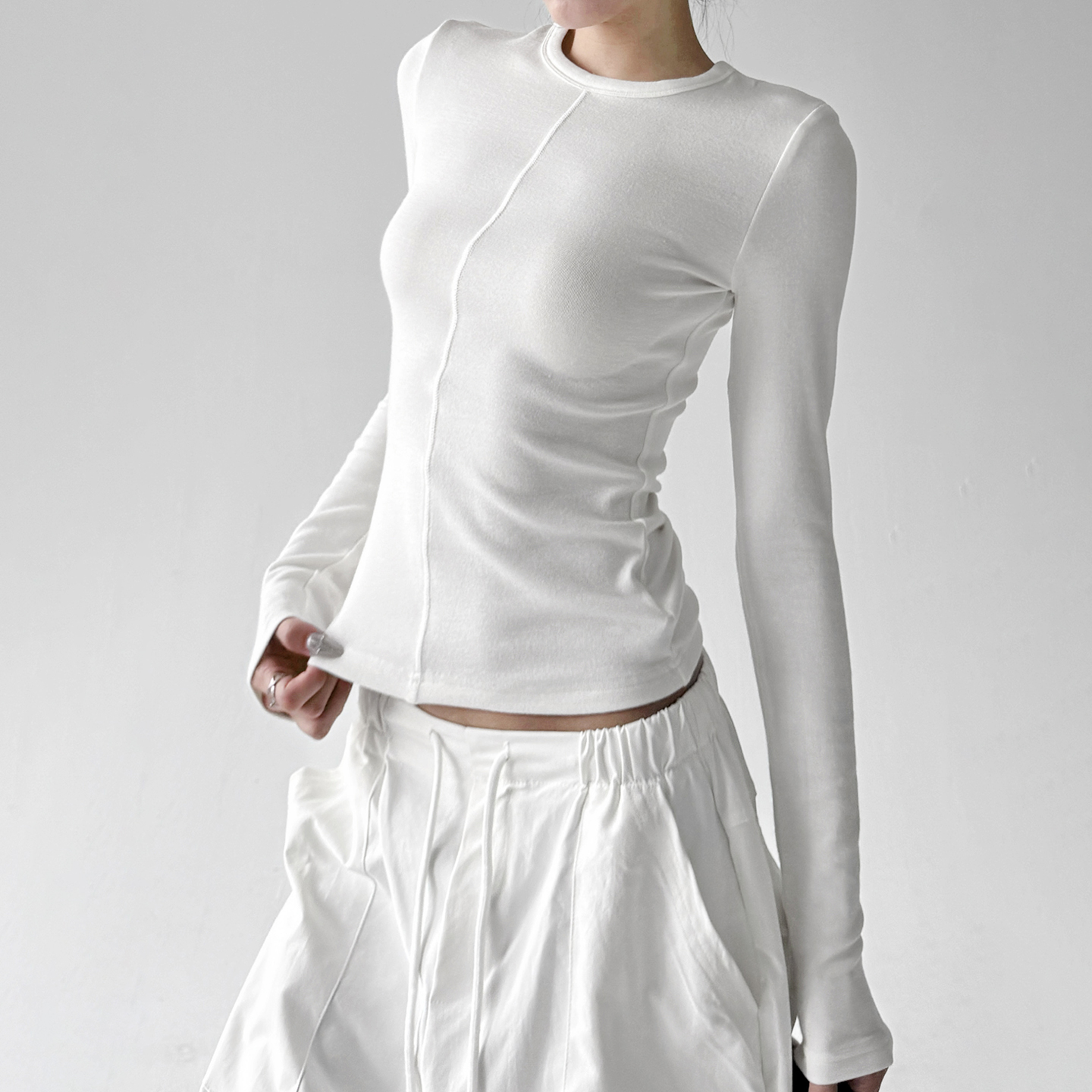 高级感修身 新款 打底上衣 T恤女2025秋季 白色圆领正肩长袖