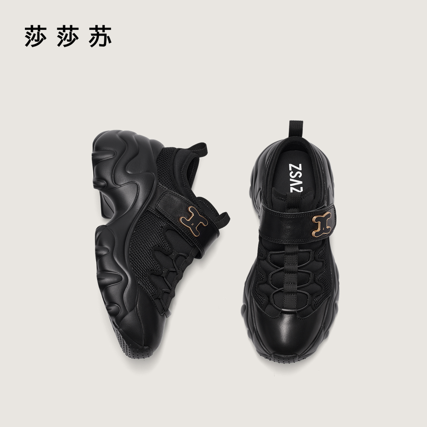 厚底增高轻便姜饼人魔术贴黑色运动鞋 莎莎苏秋冬新款 猫爪老爹鞋