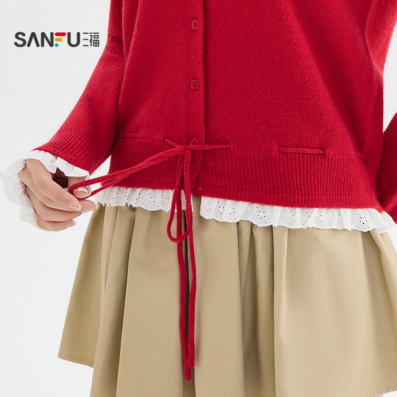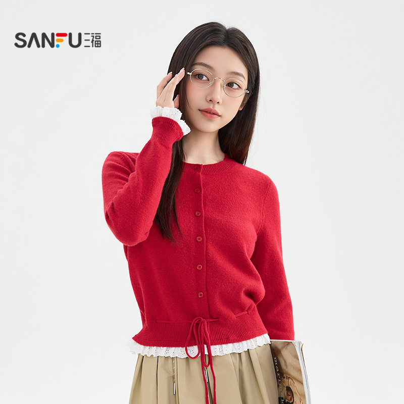 秋冬圆领羊绒衫 外套设计感小众假两件撞色毛衣 女100纯山羊绒开衫
