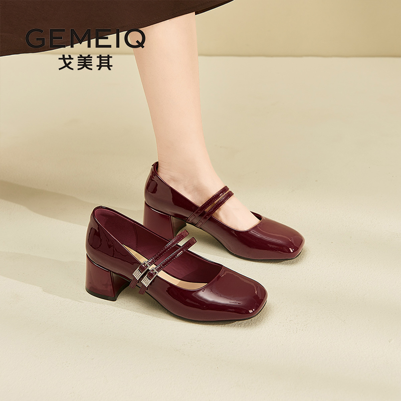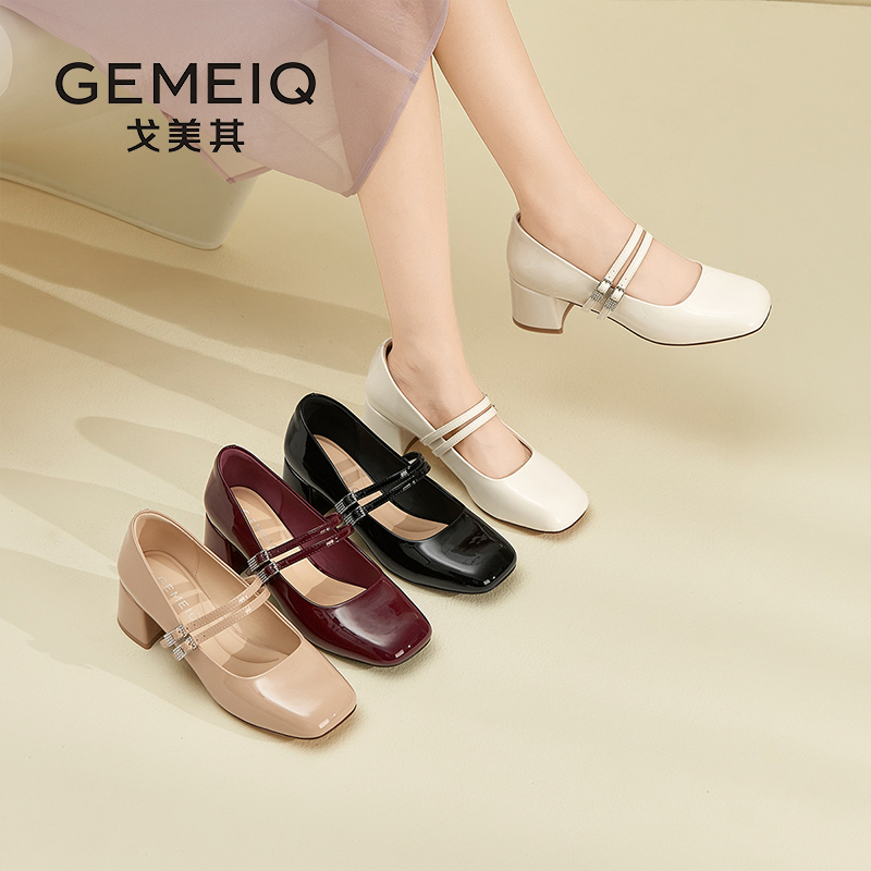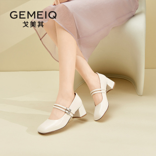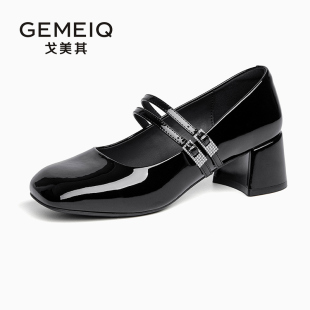 气质浅口小皮鞋 戈美其玛丽珍高跟鞋 一字带粗跟女鞋 新款 女2025秋季