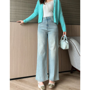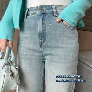 女装 女胖mm显瘦裤 秋季 直筒牛仔裤 子 韩系百搭浅蓝色窄版 DM100大码