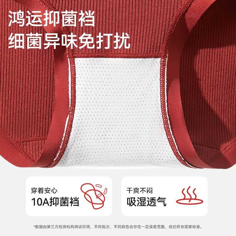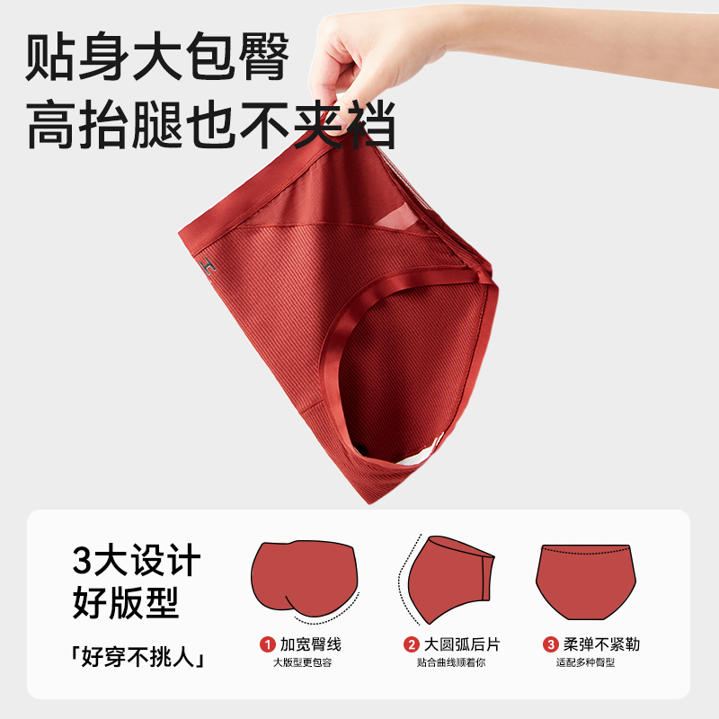 无痕不夹臀中腰三角裤 女2025爆款 本命年红内裤 结婚少女 三条装