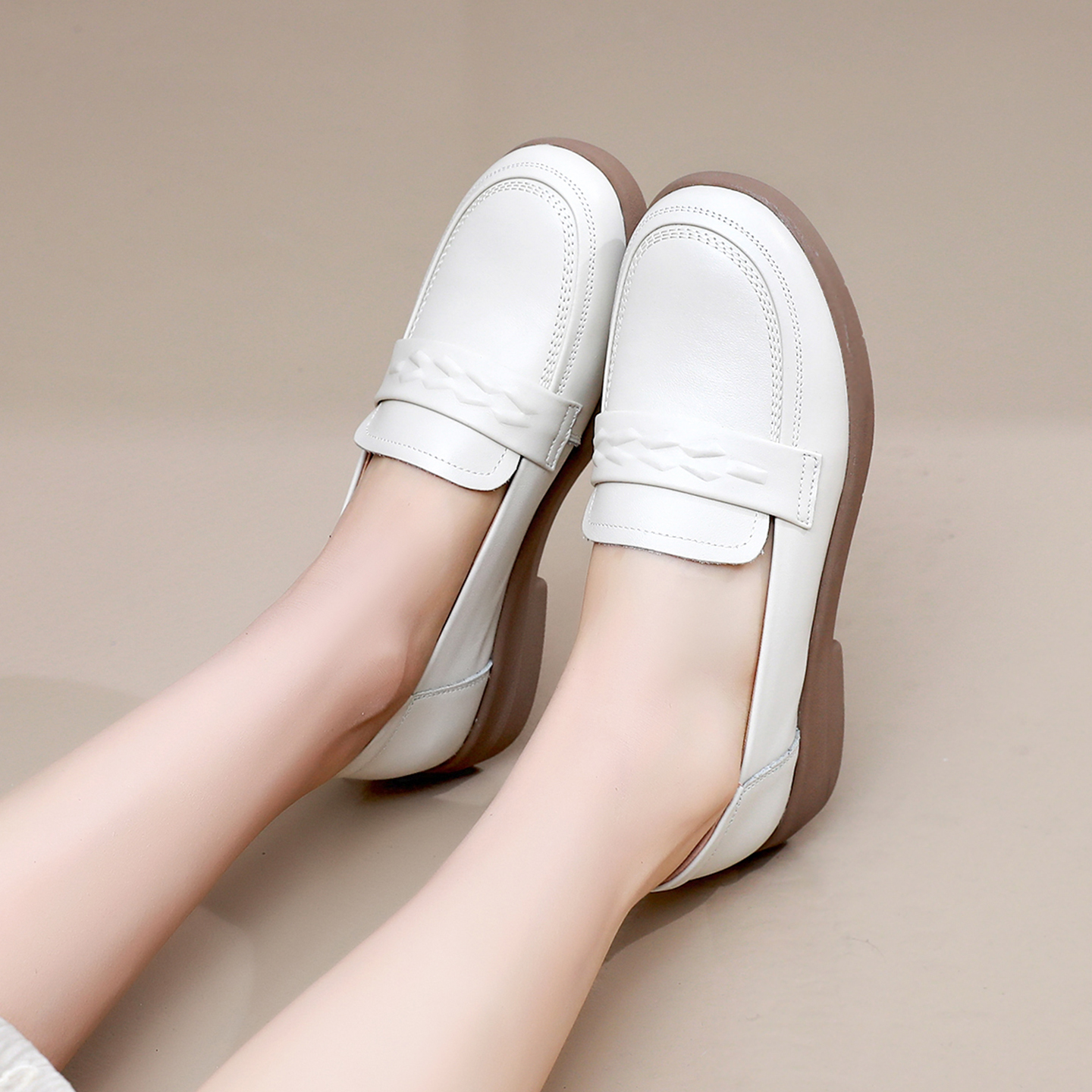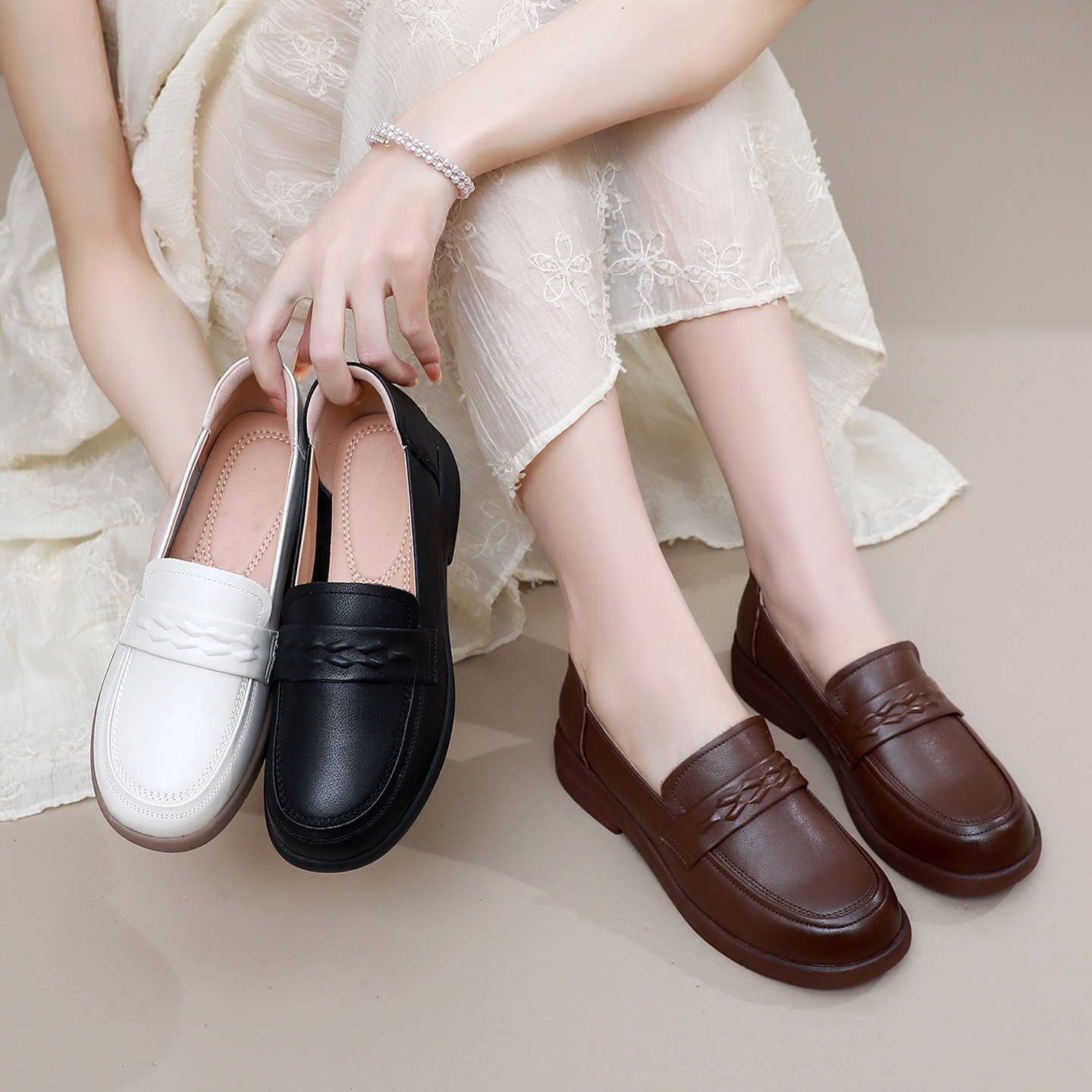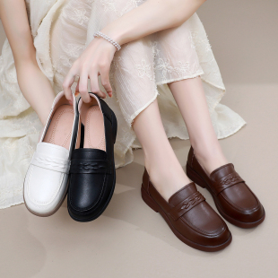 女鞋 真皮超软舒适妈妈鞋 大码 女士一脚蹬软底乐福鞋 41到43 春秋单鞋