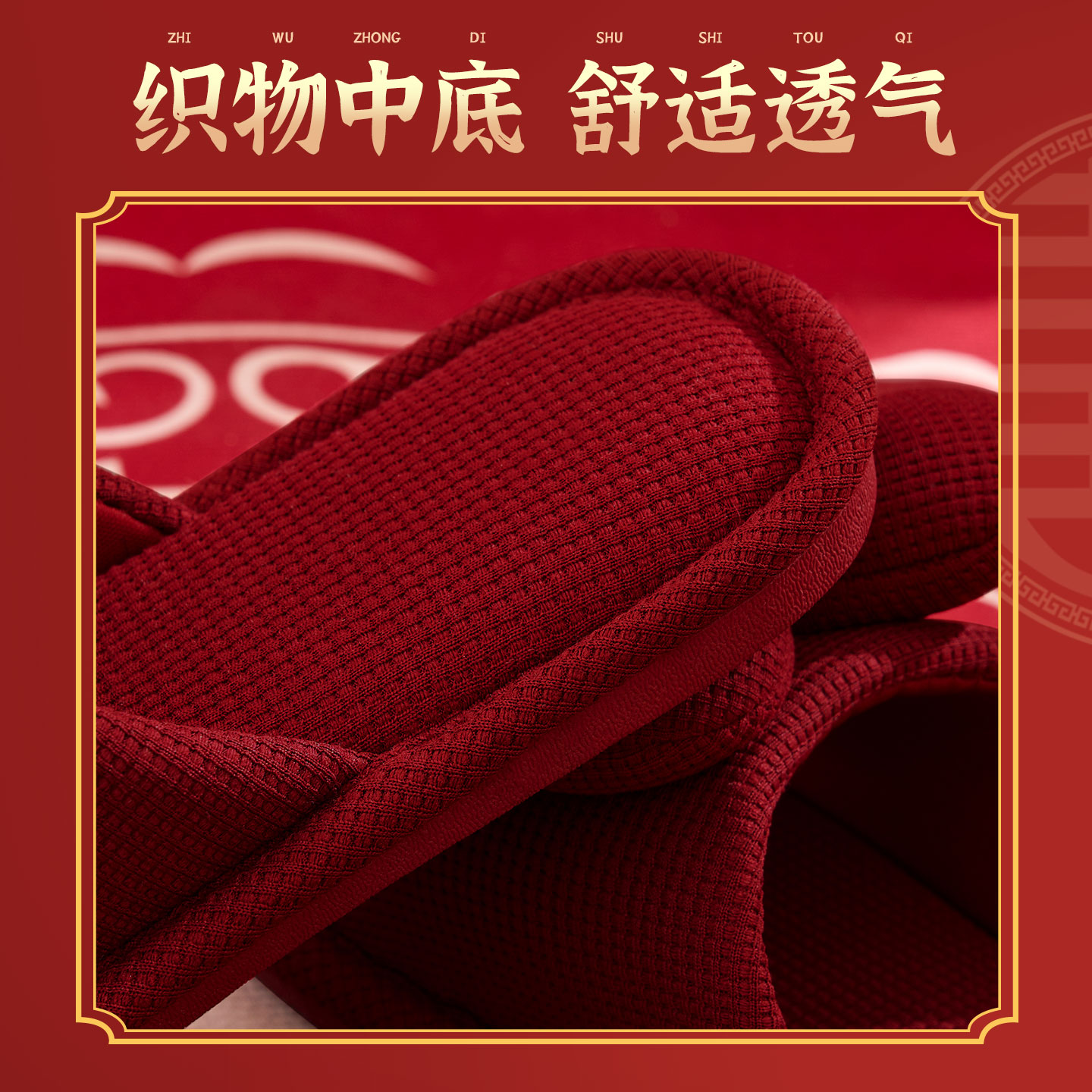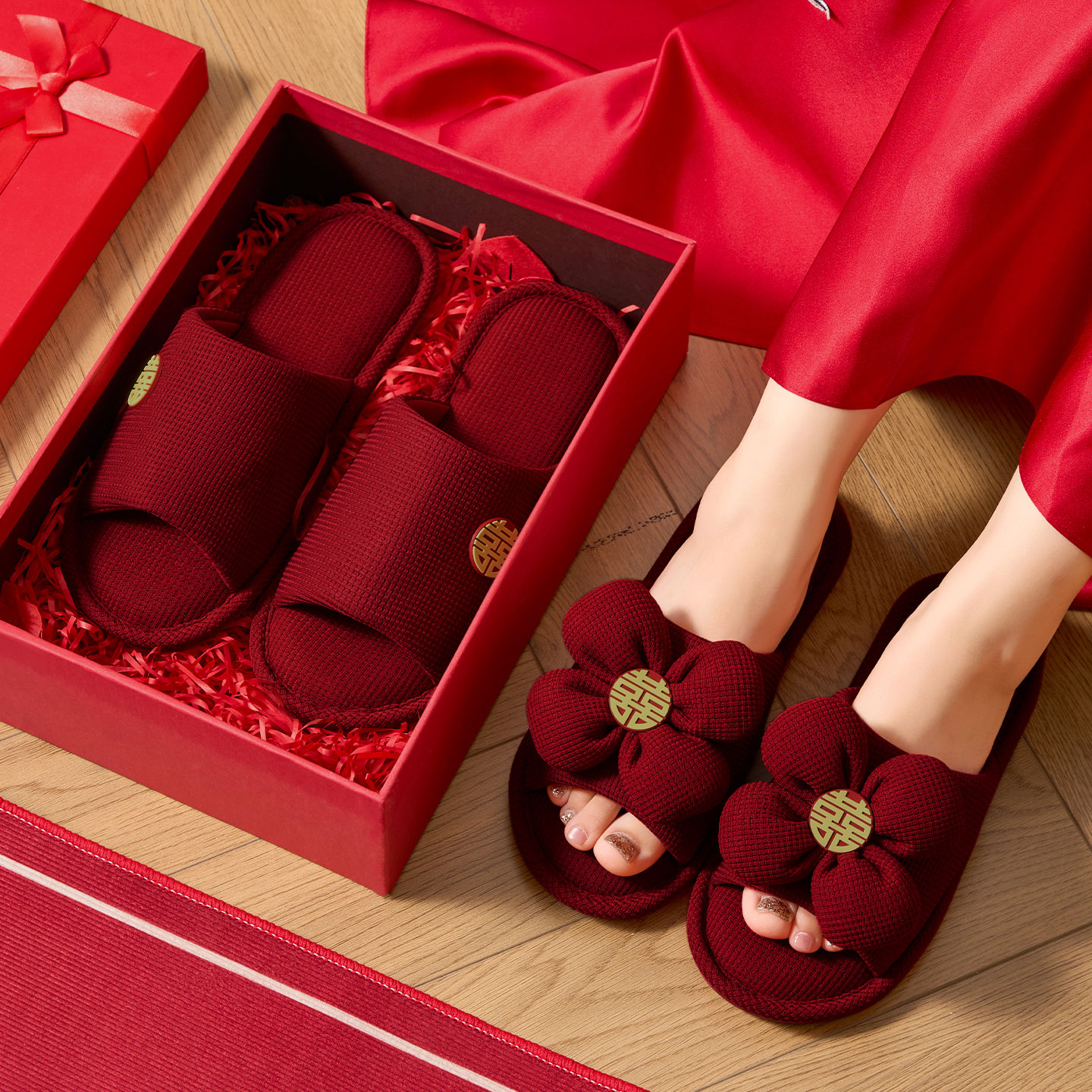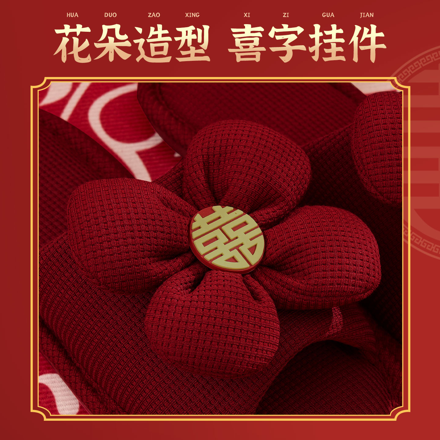 拖鞋 结婚一对红色喜庆高级新婚新娘陪嫁轻奢婚庆婚礼情侣2025婚鞋