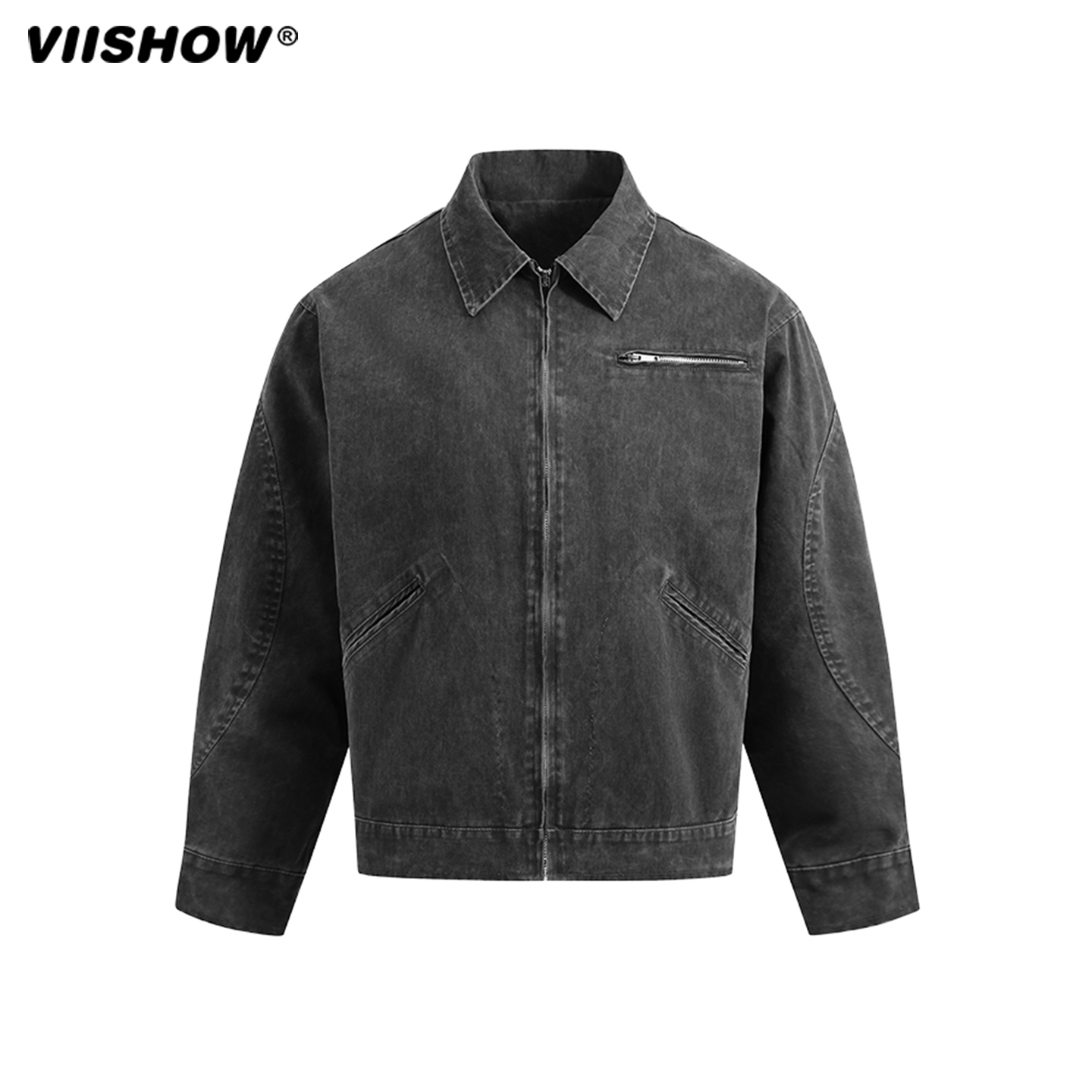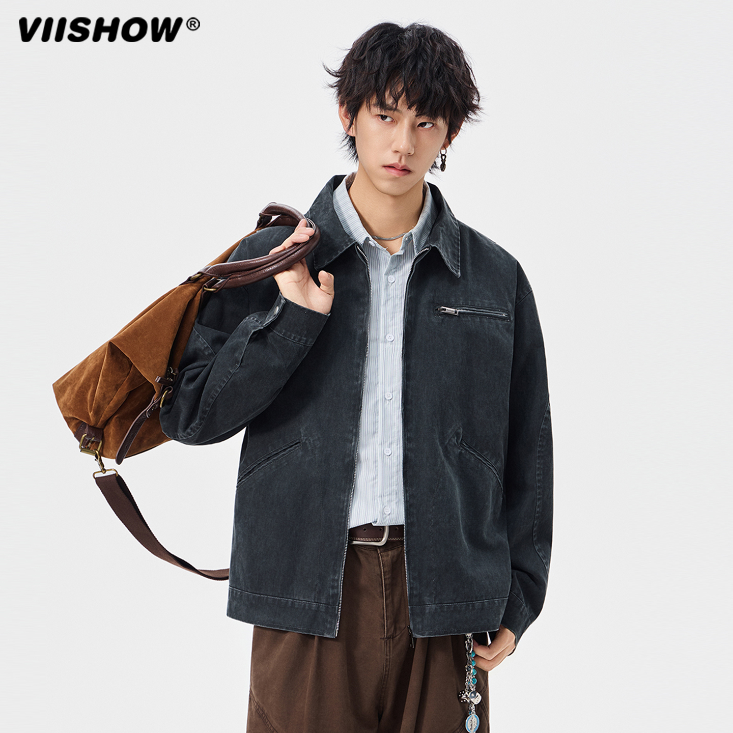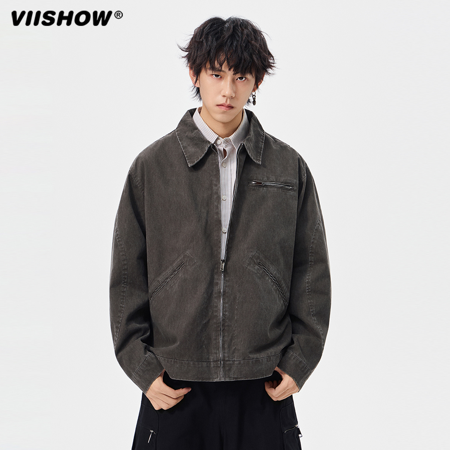 ICH 复古休闲夹克外套 MODE高级质感设计小众立领皮衣外套机车美式