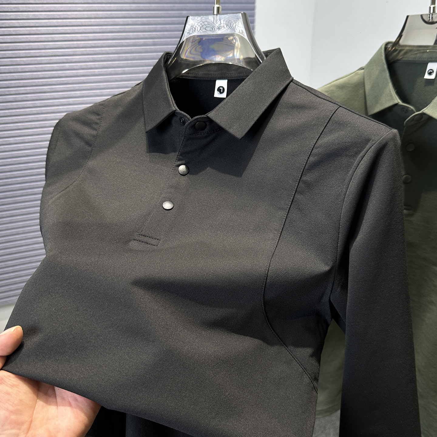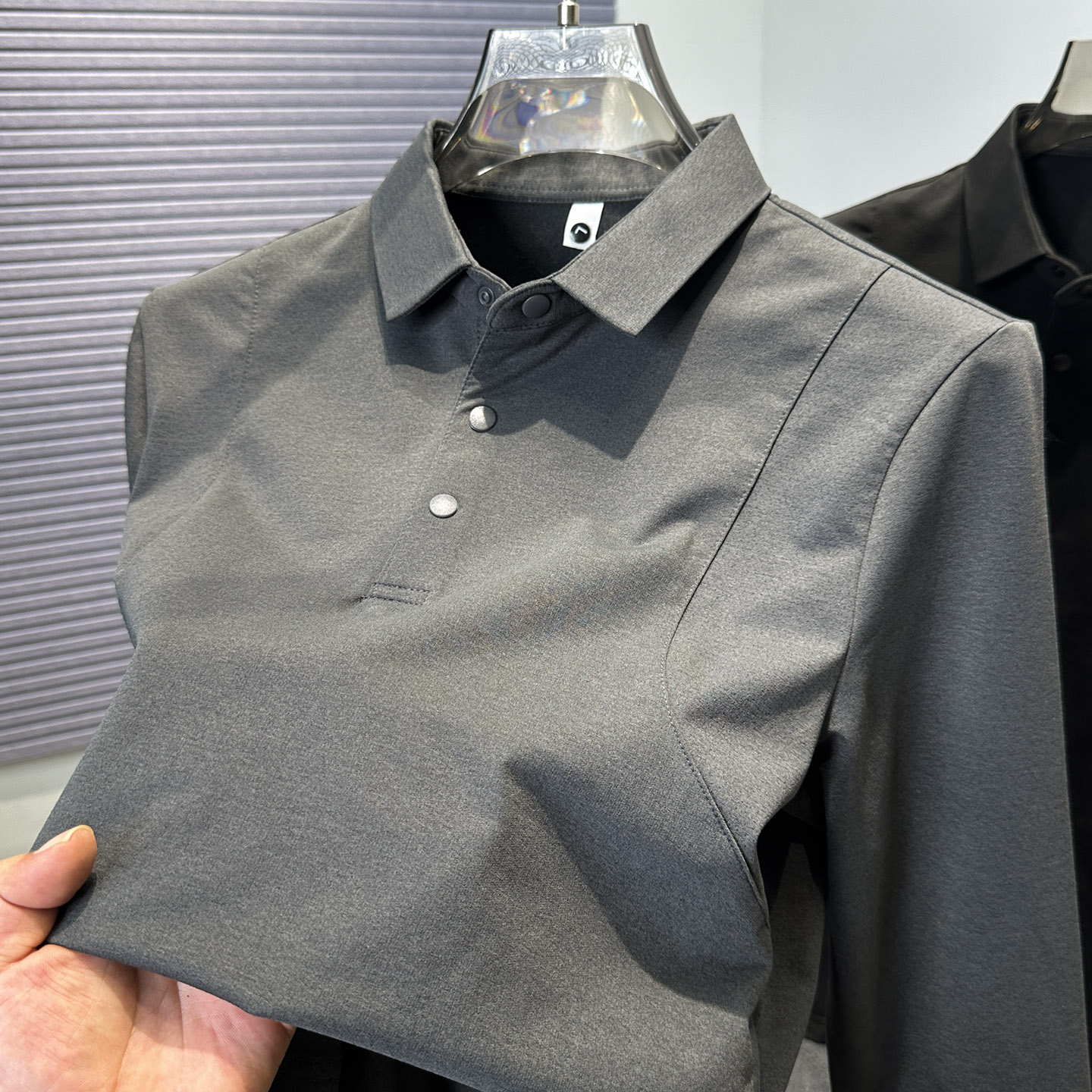领polo衫 运动休闲拼接长袖 衬衫 新款 男纯色百搭上衣服潮 t恤男秋装