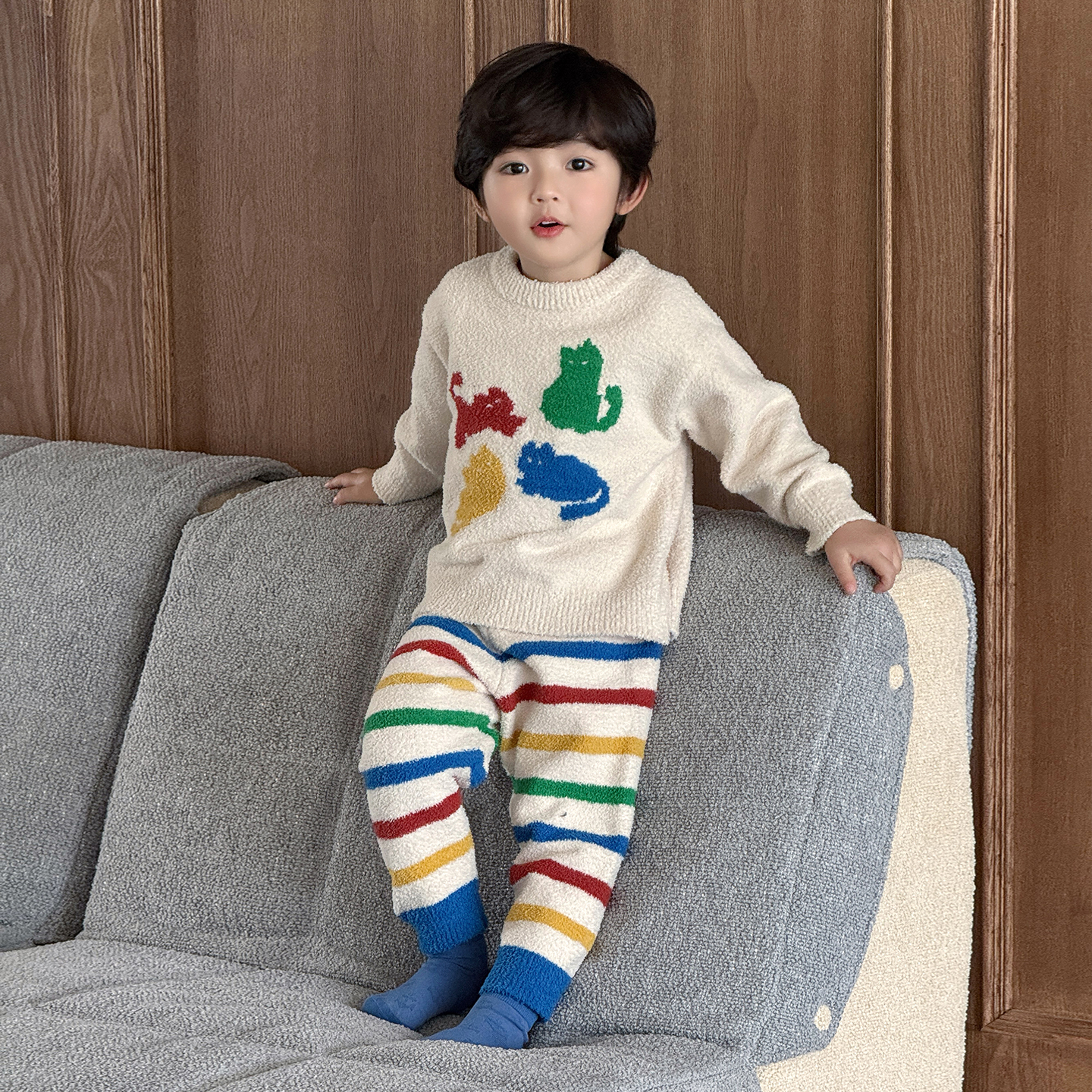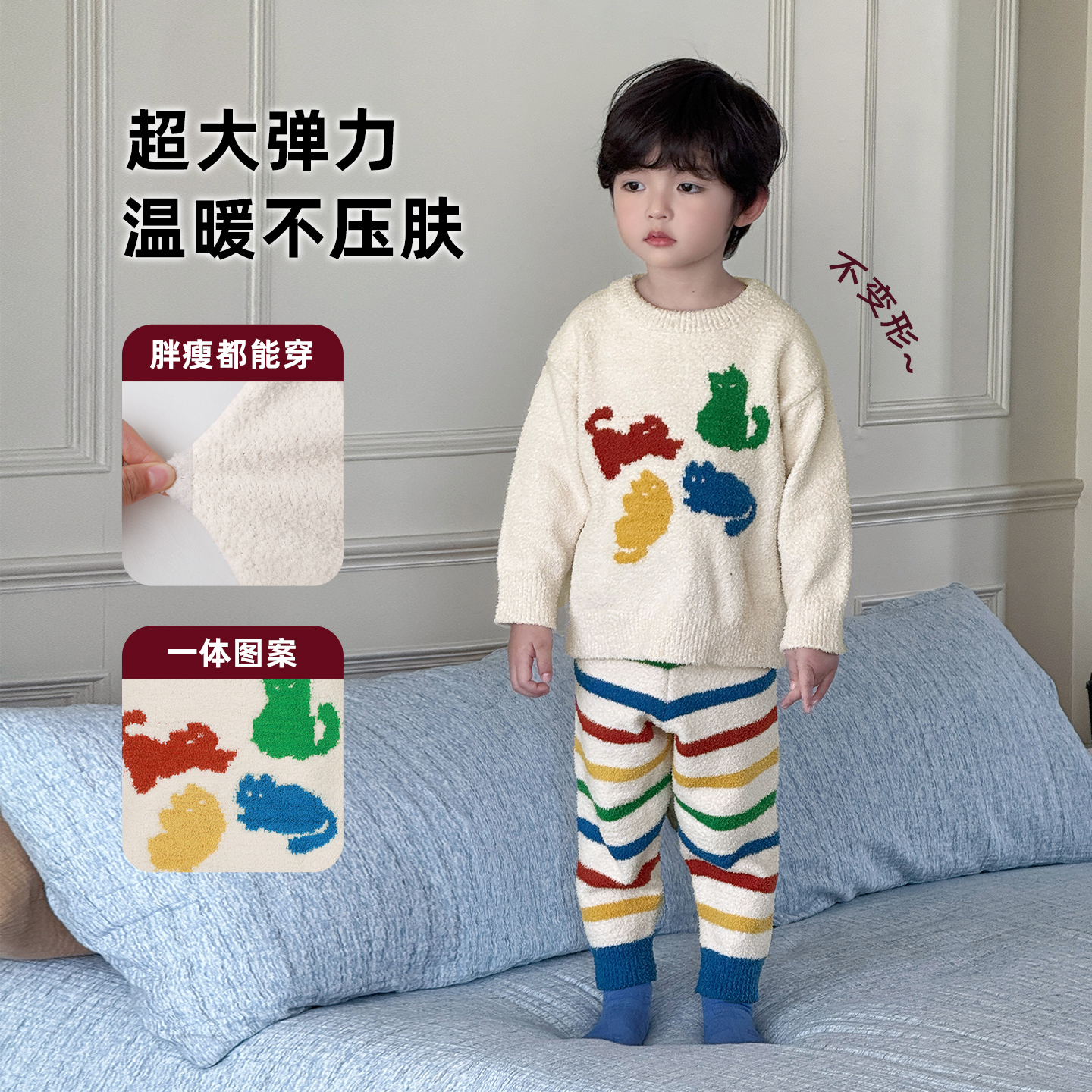 儿童睡衣秋冬男童半边绒家居服a类2025冬季 男孩软绵绵居家服 新款