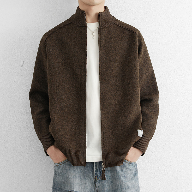 毛衣上衣 外套休闲保暖开衫 Hazzys哈吉斯秋季 男立领羊毛混纺针织衫