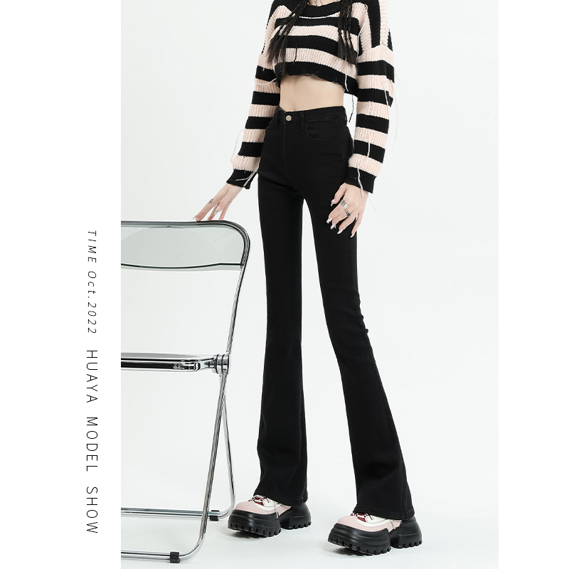 烟管裤 黑色高腰直筒牛仔裤 显瘦弹力百搭窄版 修身 女秋冬2025年新款