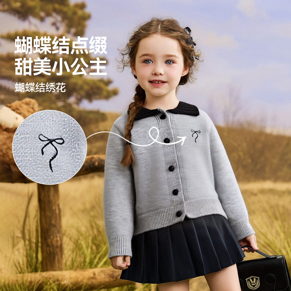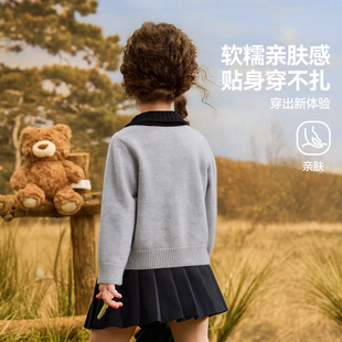 ASK女童毛衣2025洋气春秋儿童秋装 学院风 加厚上衣小女孩针织开衫