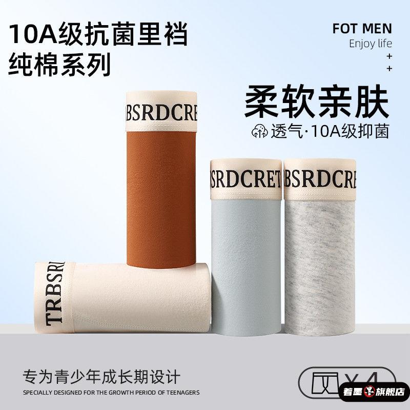 新款 3件 纯棉透气裆青少年四角短裤 平角内裤 男生 蕉内银皮311S男士